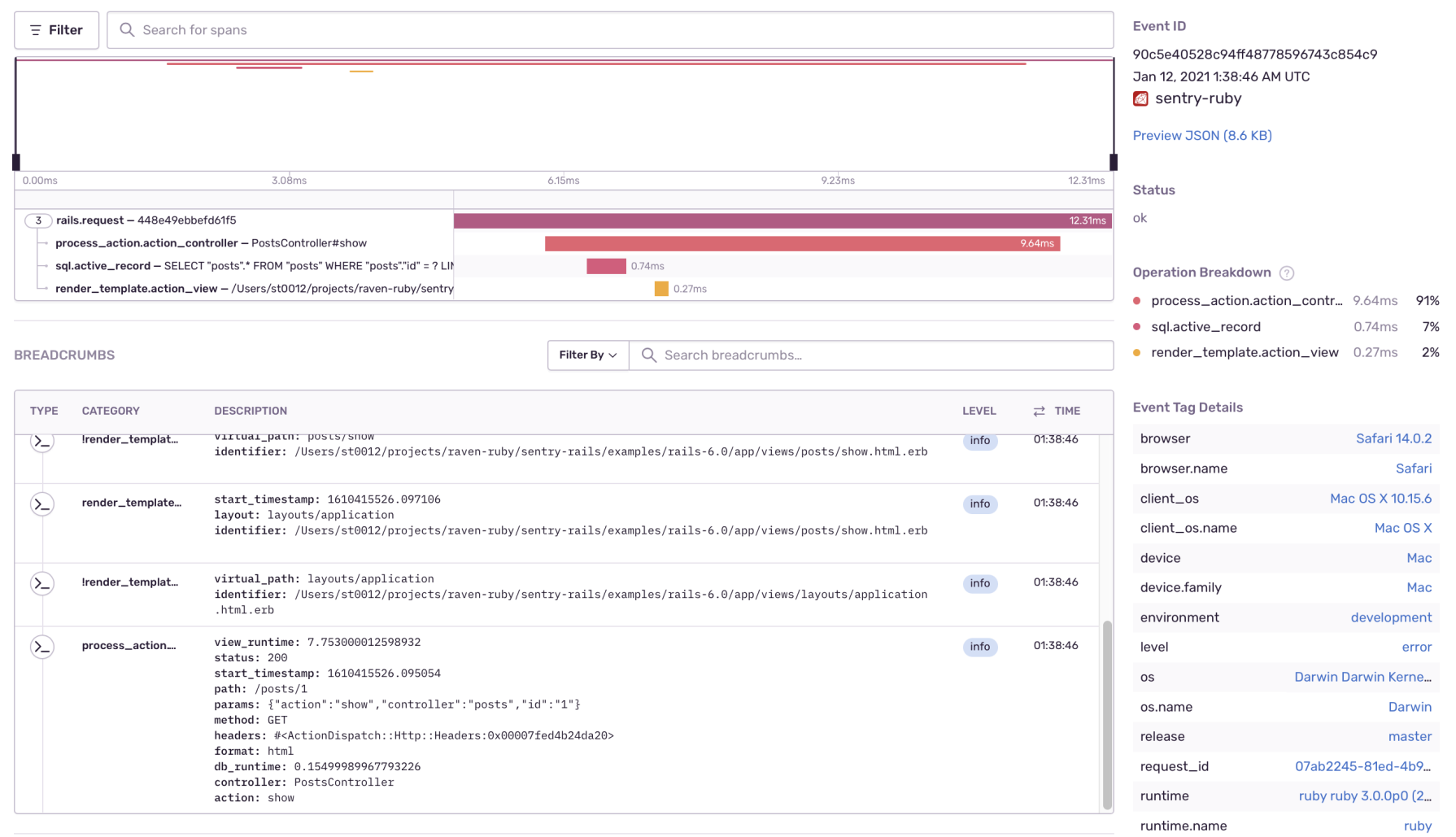 https://sentry.io/resources/distributed-tracing-infographic/In order to continuously improve your Ruby application, you need to understand everything your code touches. That means visibility into how your frontend responds to the database queries that are central to your Ruby application.