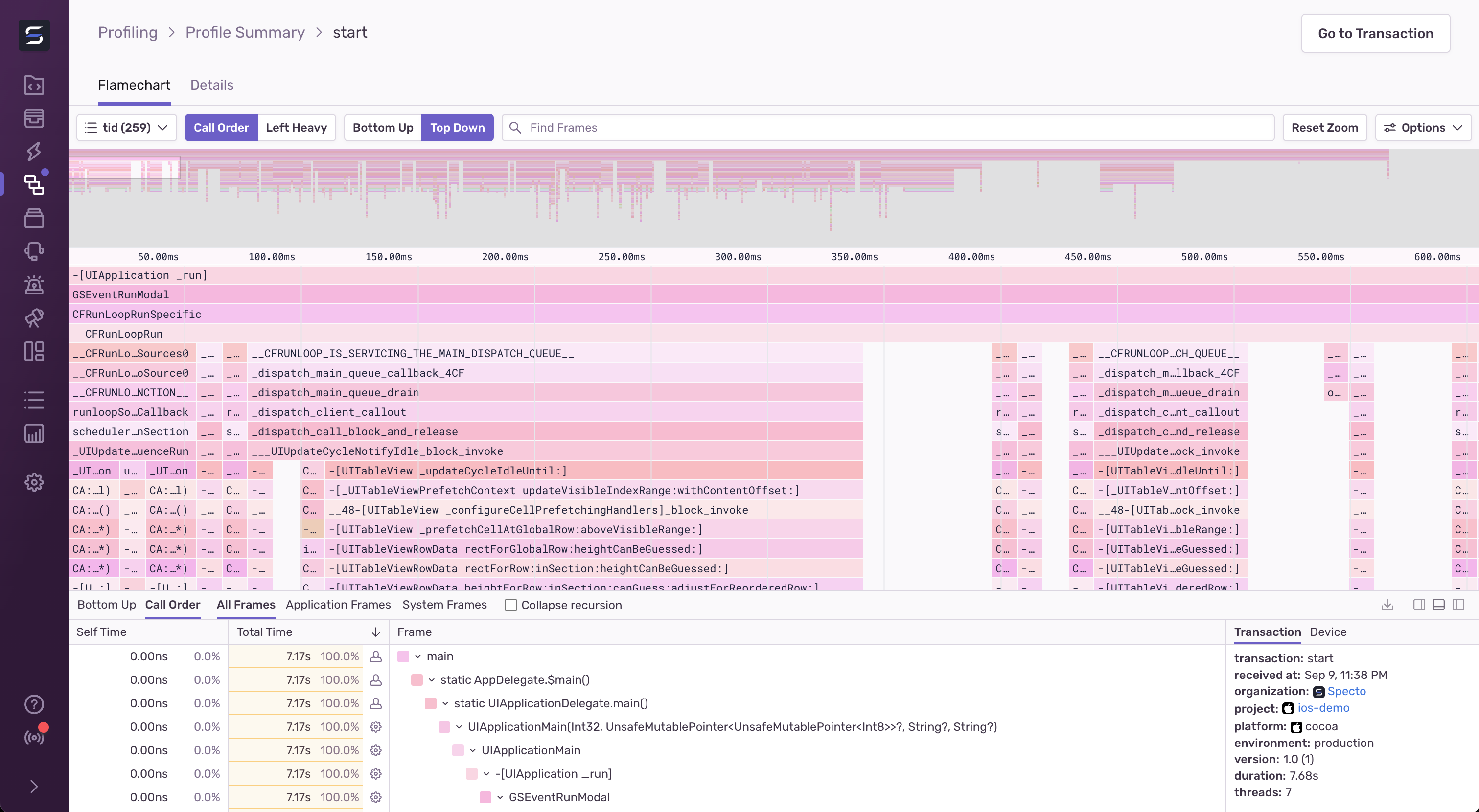 We’ve been testing our iOS profiler with early access customers for the last 5 months and have ingested millions of profiles from real user devices in production. In our benchmarks, the profiler performs with under ~5% average CPU time overhead on a mid-tier iOS device, which satisfies our requirement for a low overhead profiler. The learnings from this project have also helped us start expanding profiling support to additional platforms.