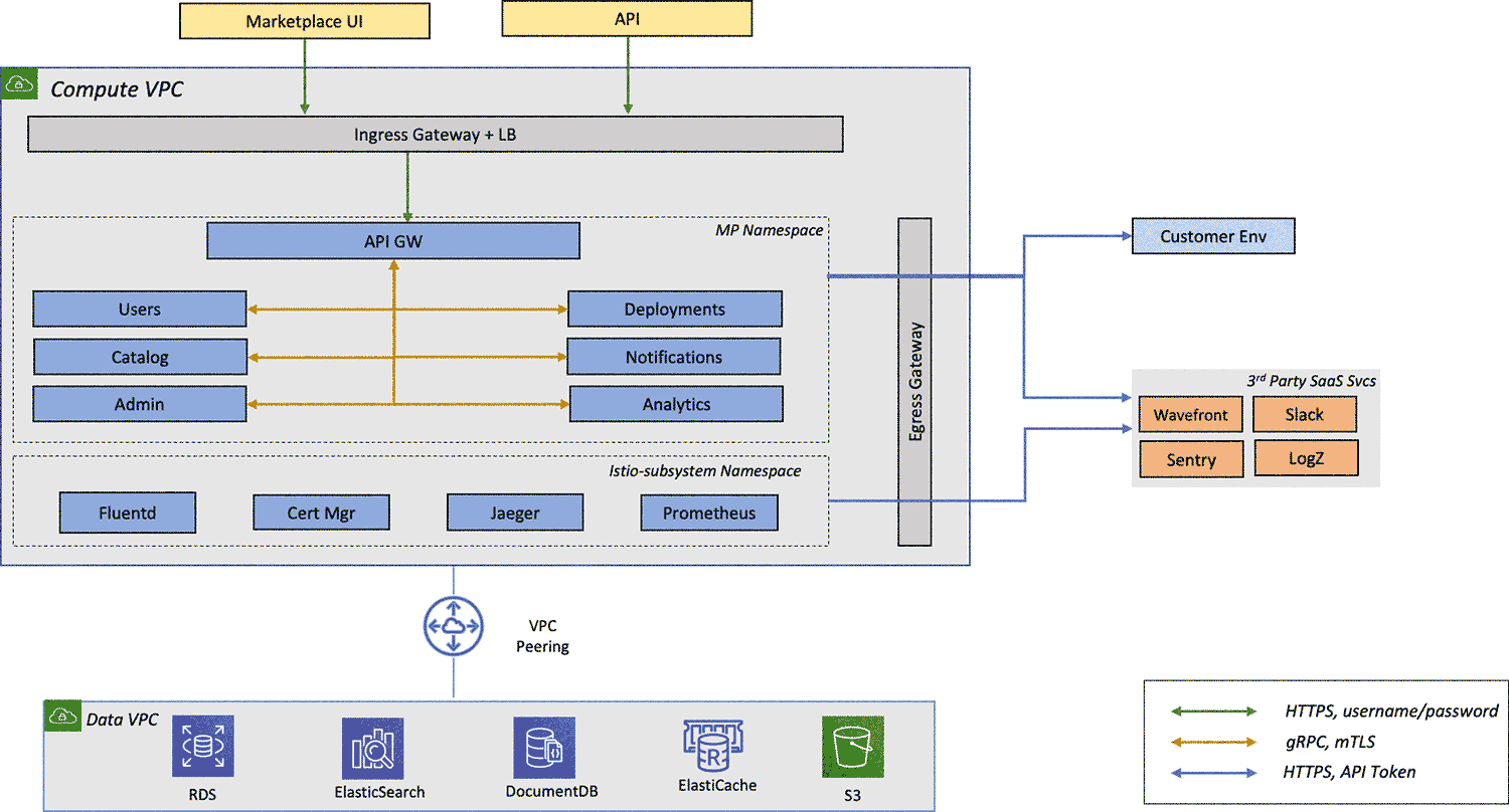 Below, I’ll talk about the observability pattern developed by my team to prepare ourselves for the challenge of running an app in production. For reference, Cloud Marketplace by VMWare is a microservices-based app built on Kubernetes (K8S).