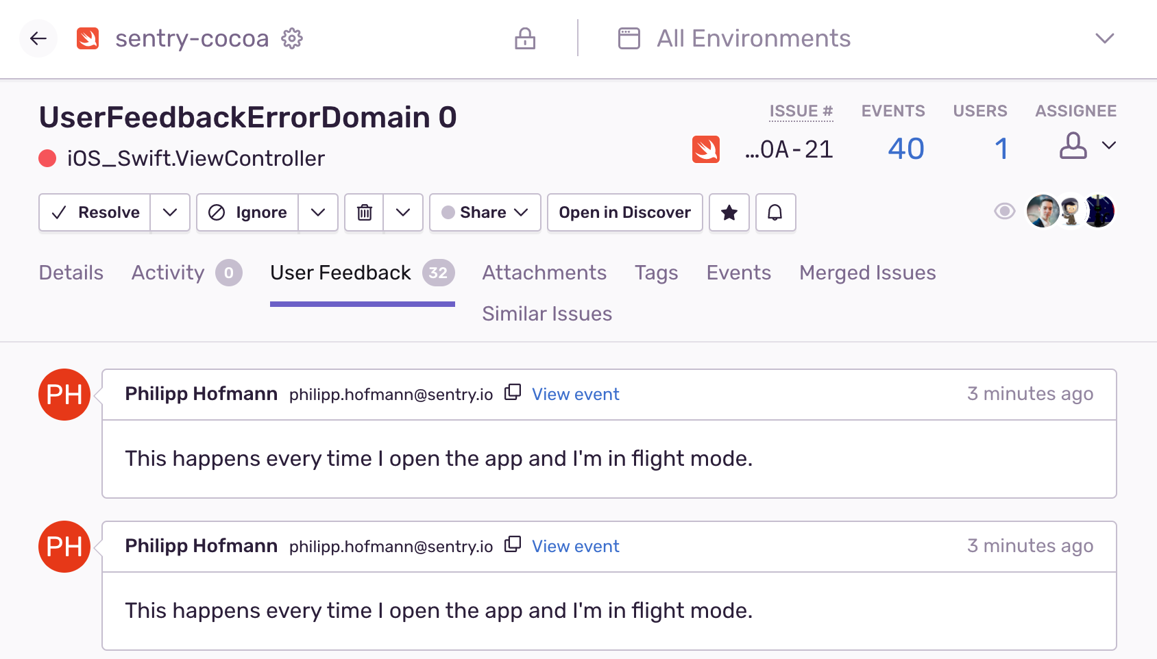 You can also see the feedback related to a single issue by clicking on the User Feedback tab.