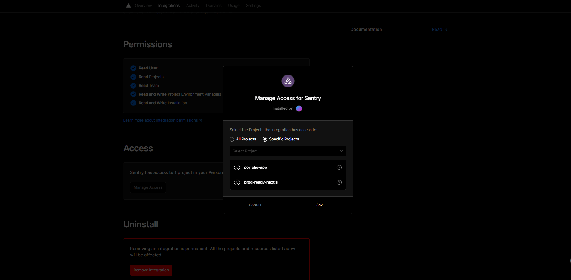 Using it is as simple as adding the Integration to Vercel, and then giving access to the project through the Vercel UI.