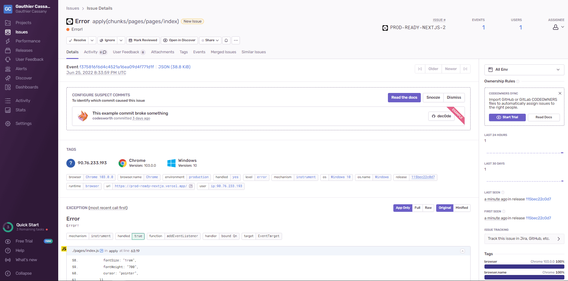 Let’s finish up by making sure Sentry is working in production.