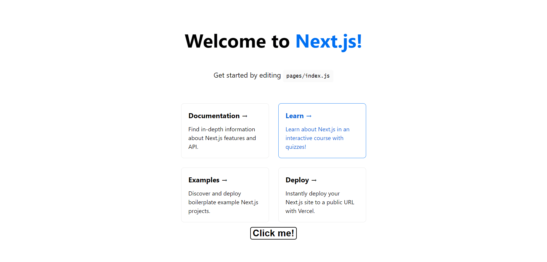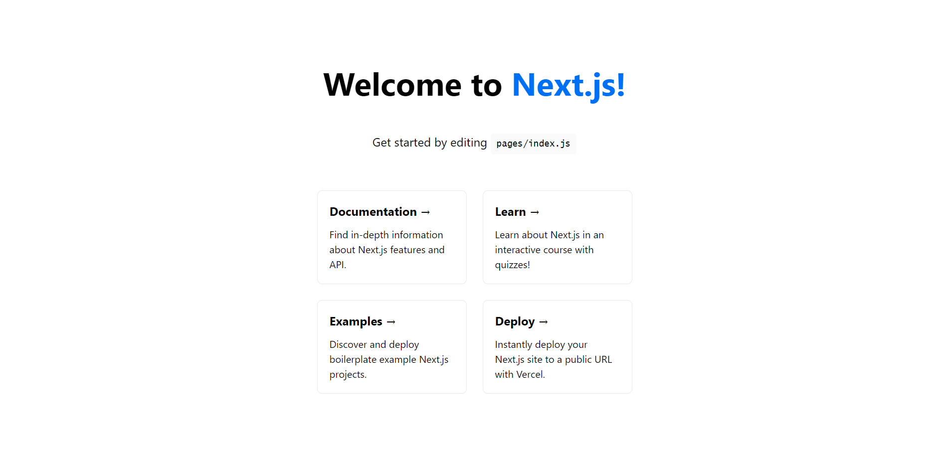 npx create-next-app prod-ready-nextjs-sentry --use-npmWe can start our application using the script provided by Next.js in the package.json file: