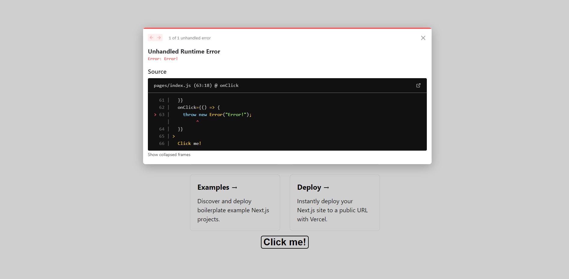 npm run devand by clicking the error button we have added previously.
