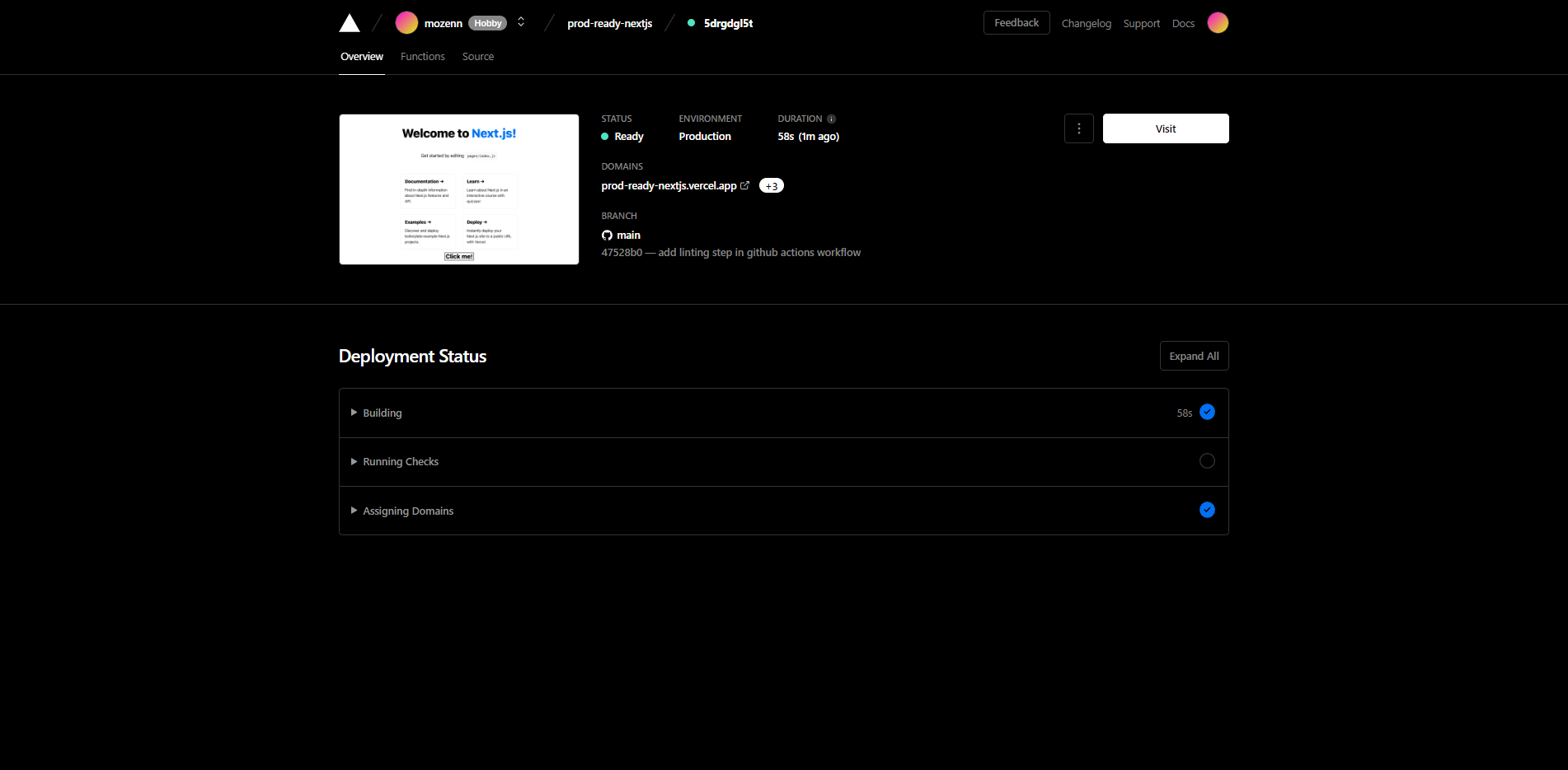 For that, we are using Vercel, a Cloud platform from the creator of Next.js.
