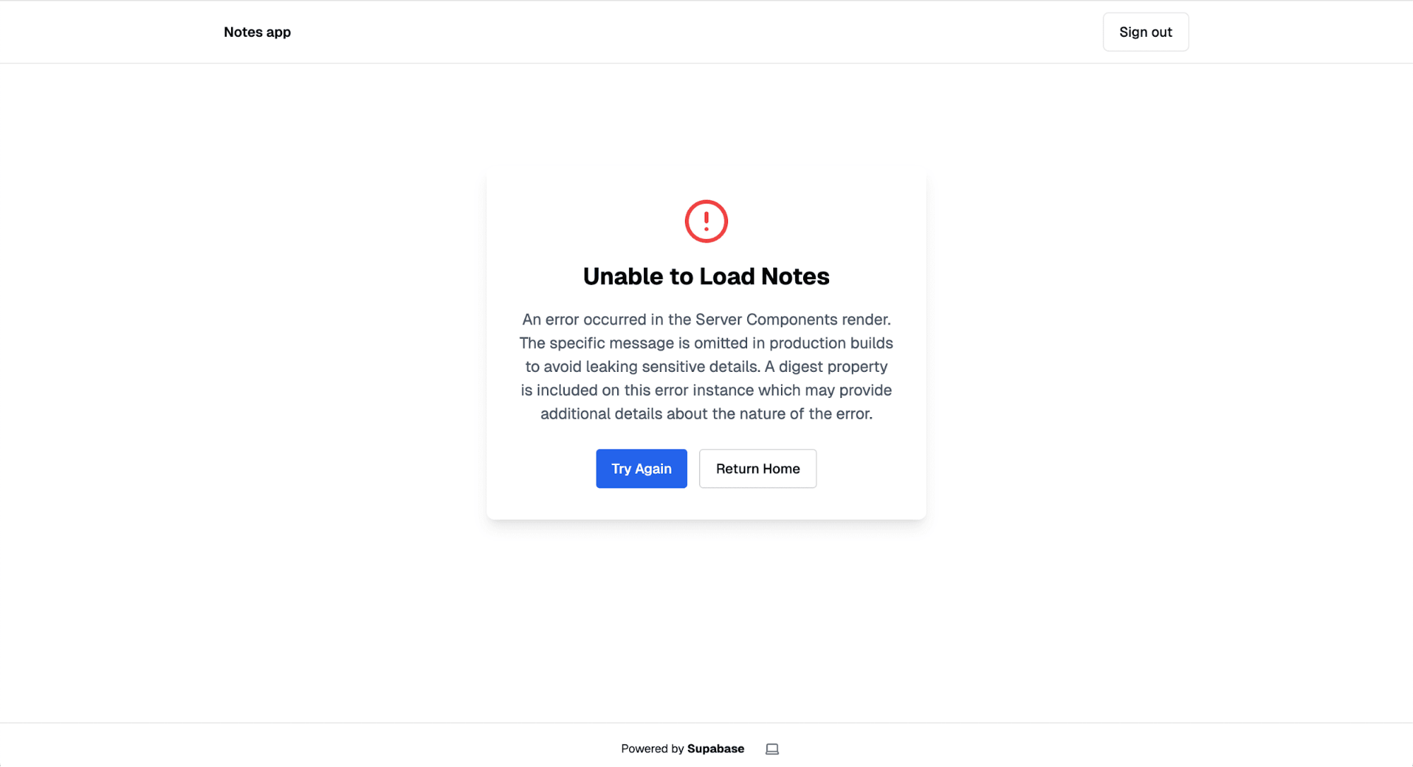 We created an example Next.js note-taking app using Vercel’s Next.js Supabase starter. The app has cookie-based authentication and uses Server Actions (async functions executed on the server) to read, edit, and create notes. Server Actions can be called in server or client components to handle form submissions and data mutations without needing to create an API.