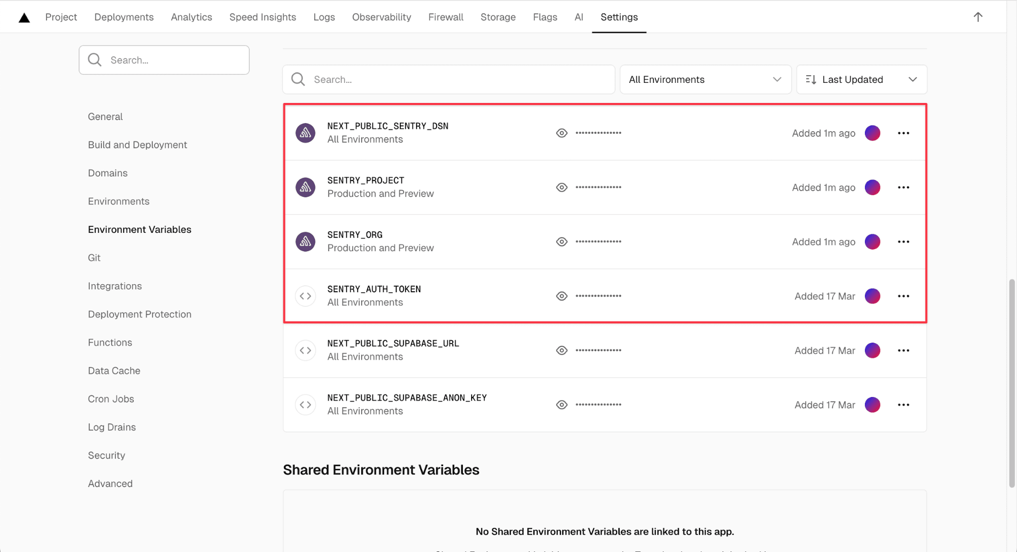 The @sentry/nextjs package automatically generates and uploads source maps. If you’re deploying with Vercel, use the Vercel integration to handle source map uploads during deployment.