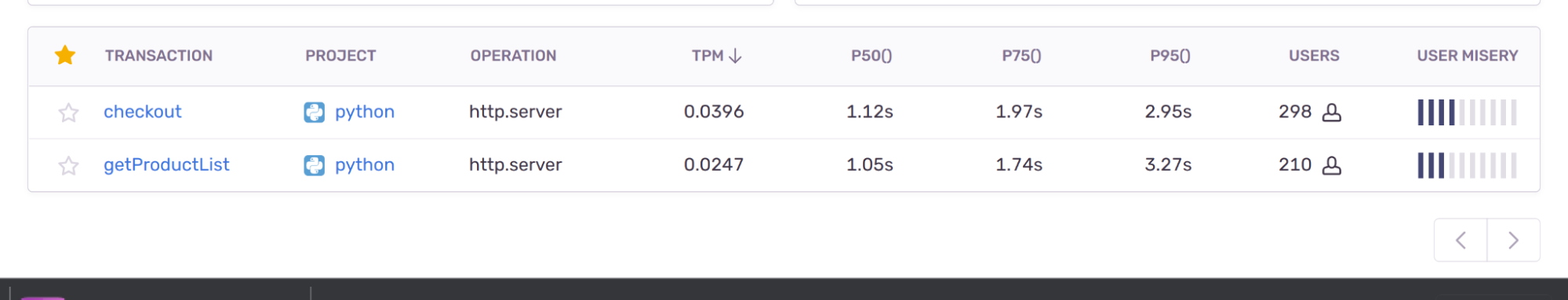 The diagram above gives an overview of how each request performs and what causes it to be slow, allowing you to fix it quickly. From the configurations, we set a trace parameter (traces_sample_rate=1.0) which sends every transaction to Sentry (you should choose a sample rate that you're comfortable with - Sentry's docs provide details on how to decide); this enables you to gain insights into what part of your Django application is negatively impacting its overall performance.