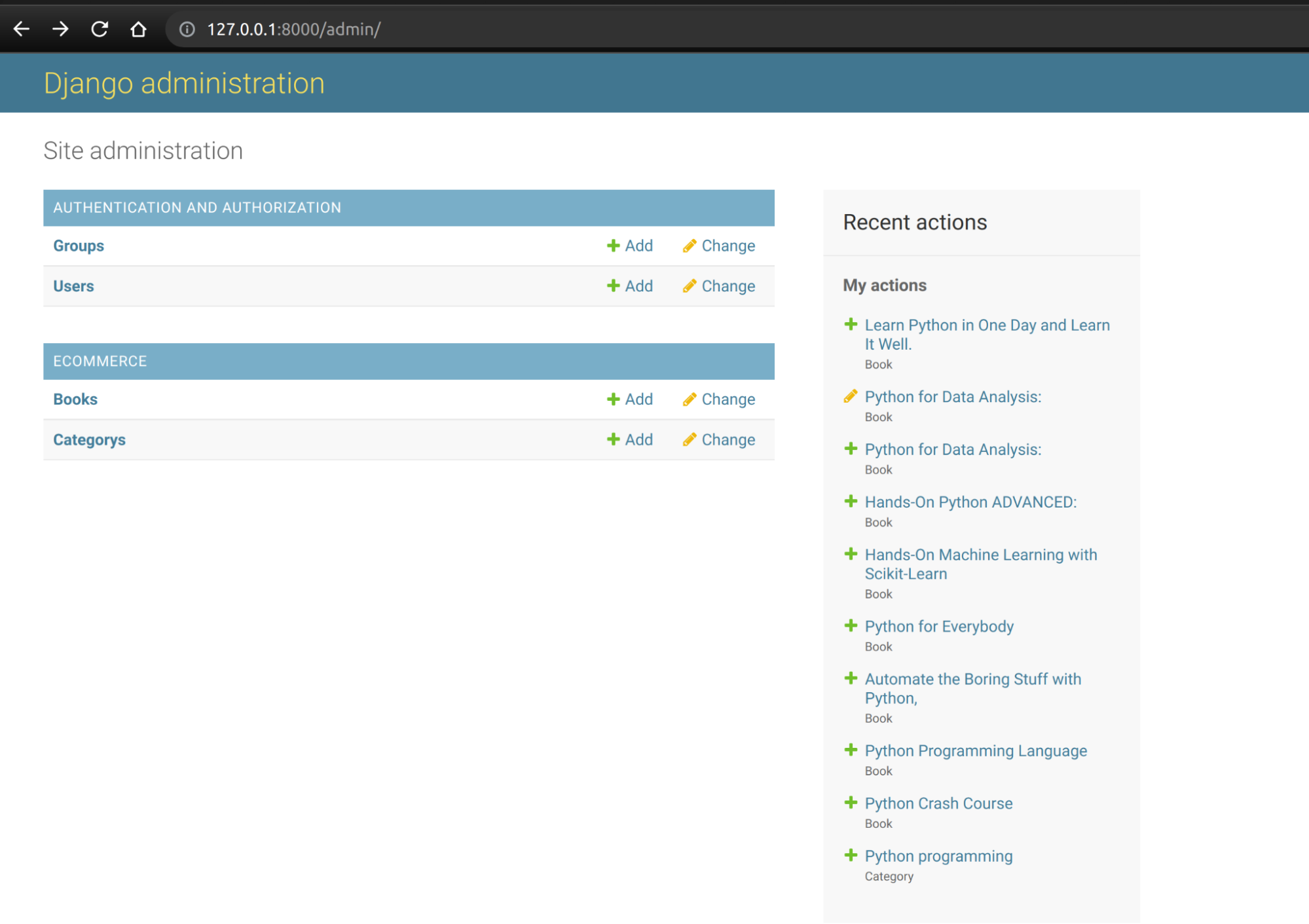 python manage.py runserverNavigate to the admin site https://127.0.0.1:8000 and add some data.