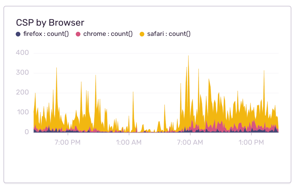 While report-only mode worked well, I did encounter some hiccups in Safari, as it’s been known to jumble its report-only and enforced modes. This meant I was getting errors for sources that should be allowed. To verify that these errors were caused by Safari bugs, I used our staging environment to test Safari with only the new rules being enforced. And using Dashboards, I was able to fully view Safari’s impact on our CSP errors.