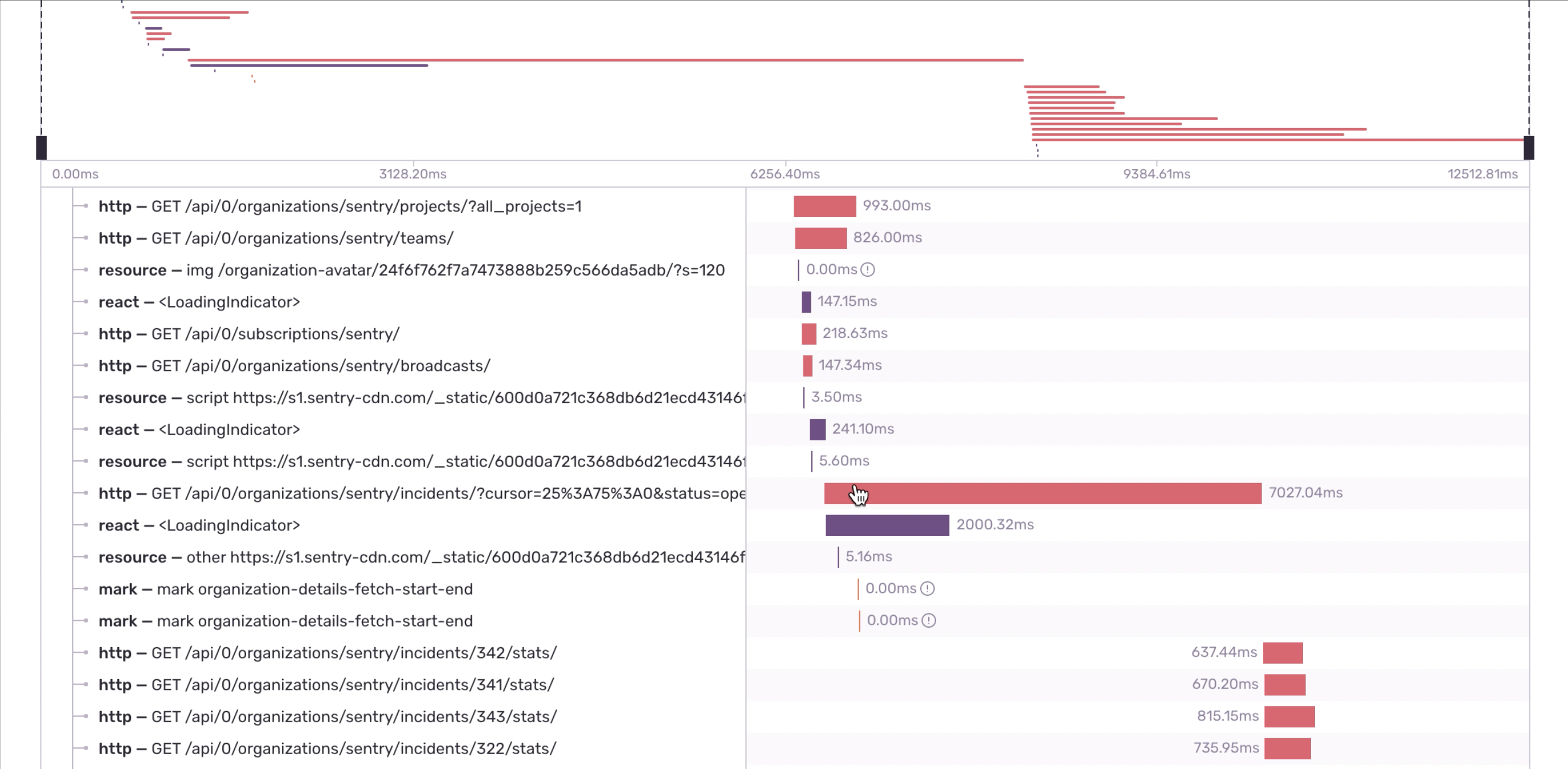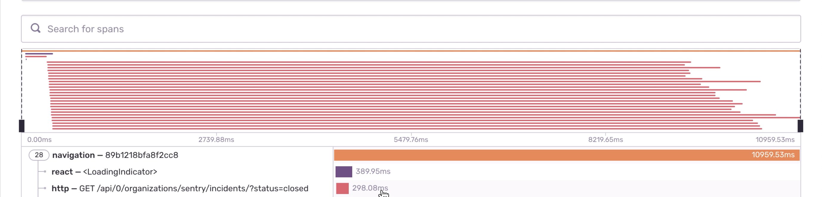 By using the tracing capabilities as a part of our new performance monitoring offering, Zac found out that an incident’s endpoint call was taking seven seconds to complete. This, along with a handful of other queries, were powering the trend graphs and alert statistics which impacted load time.