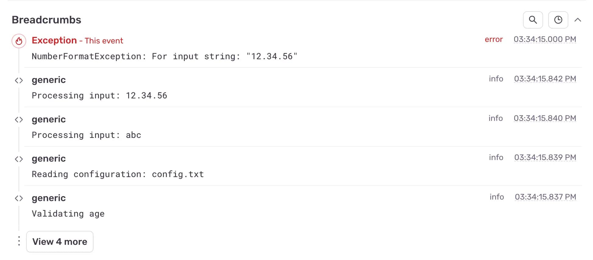 In addition, with the breadcrumbs feature, developers can visualize a detailed timeline of the events that occurred before a specific error.