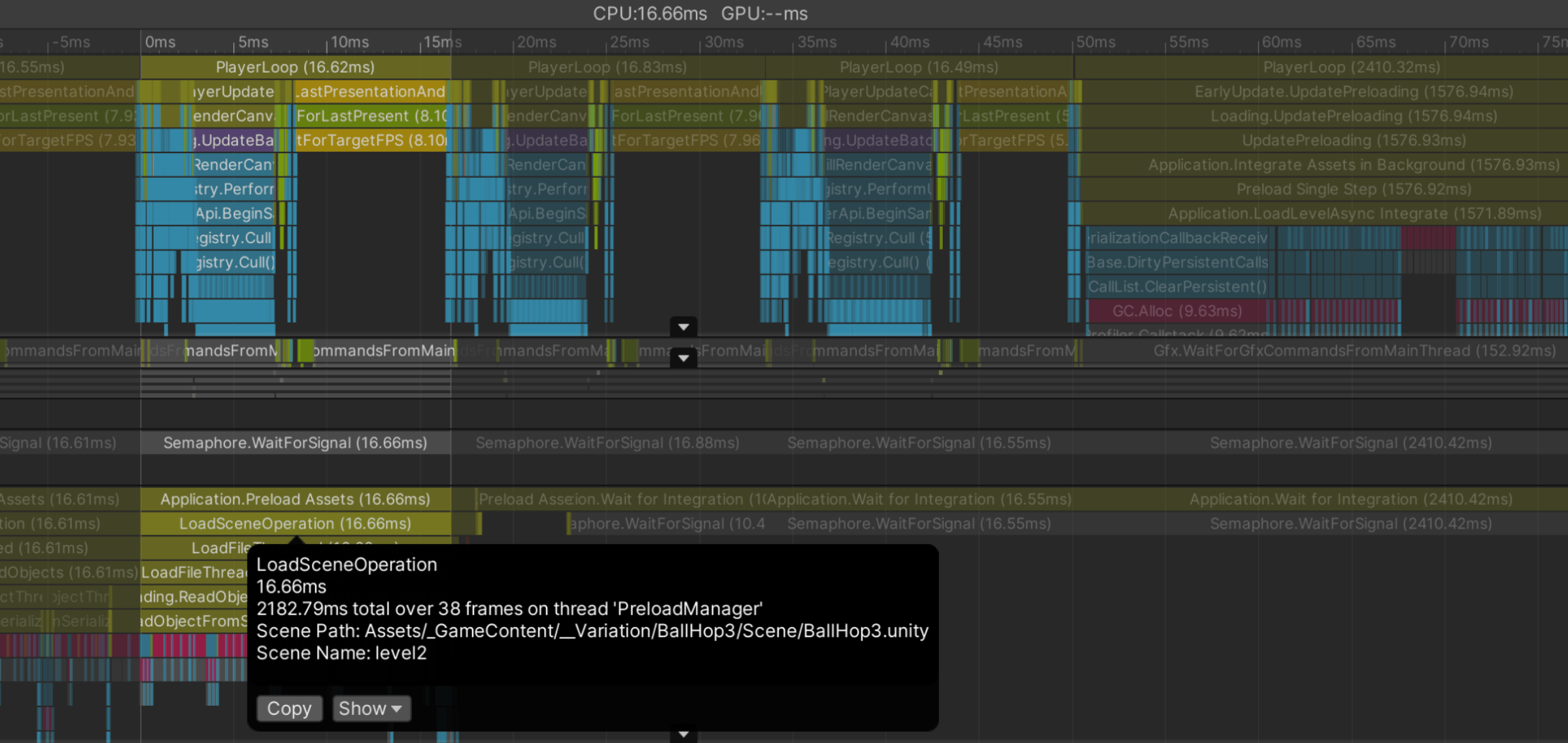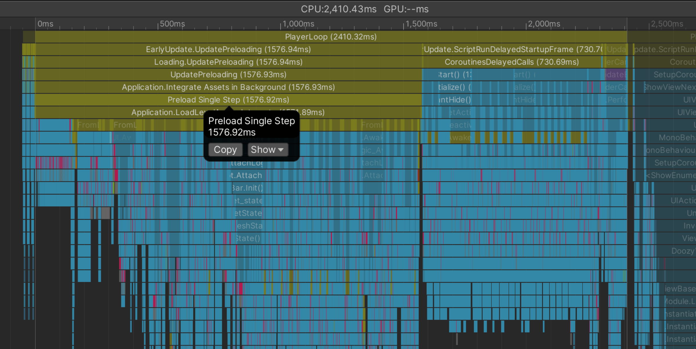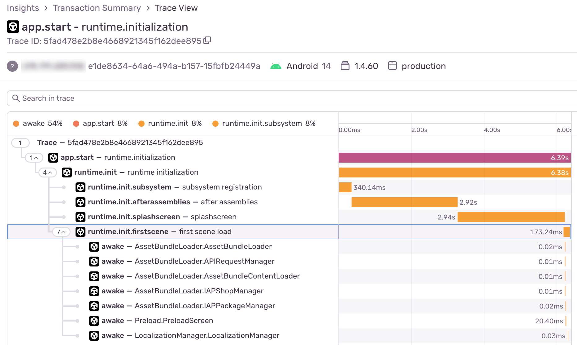 Awake() was triggered very late, after 5s. How significant is this? Extremely! It means the ANRs weren’t coming from our game logic at all—the app was freezing before our code even had a chance to run!