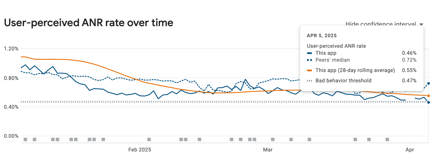 Our previous build hadn’t crossed the 5-second ANR threshold, but it was already skating dangerously close. For a significant portion of users, some operations were taking up to 4.9 seconds.