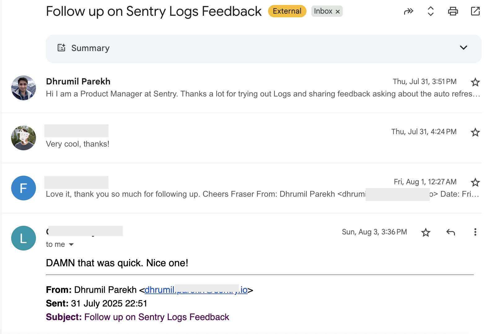 At Sentry, we build in public and we move fast. But moving fast means we don’t always get everything right on the first try. That’s where feedback comes in: it helps us validate what’s working, spot what’s missing, and catch issues we wouldn’t always see through error tracking alone.