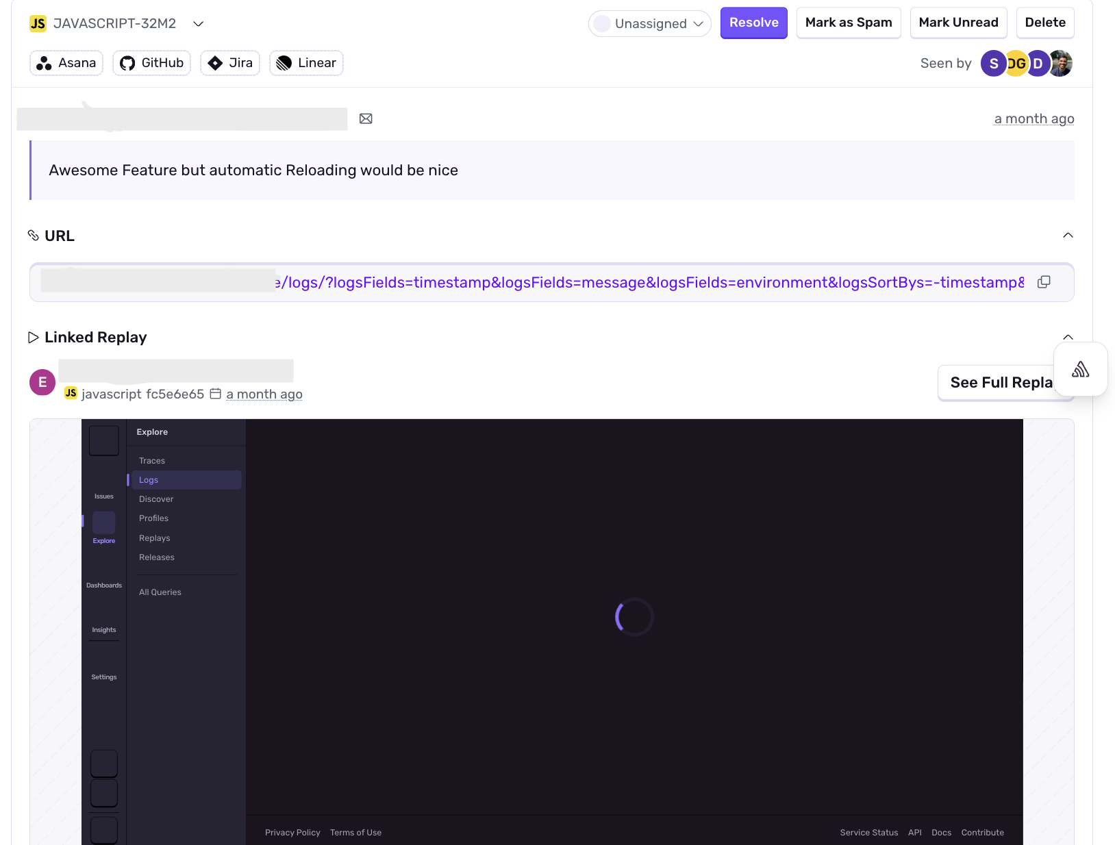 That meant when developers hit friction, their feedback came with all the context we needed like release version, environment, URL, and even a Session Replay of what happened.