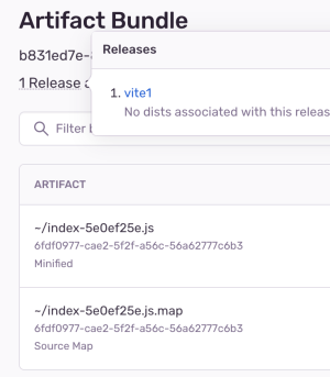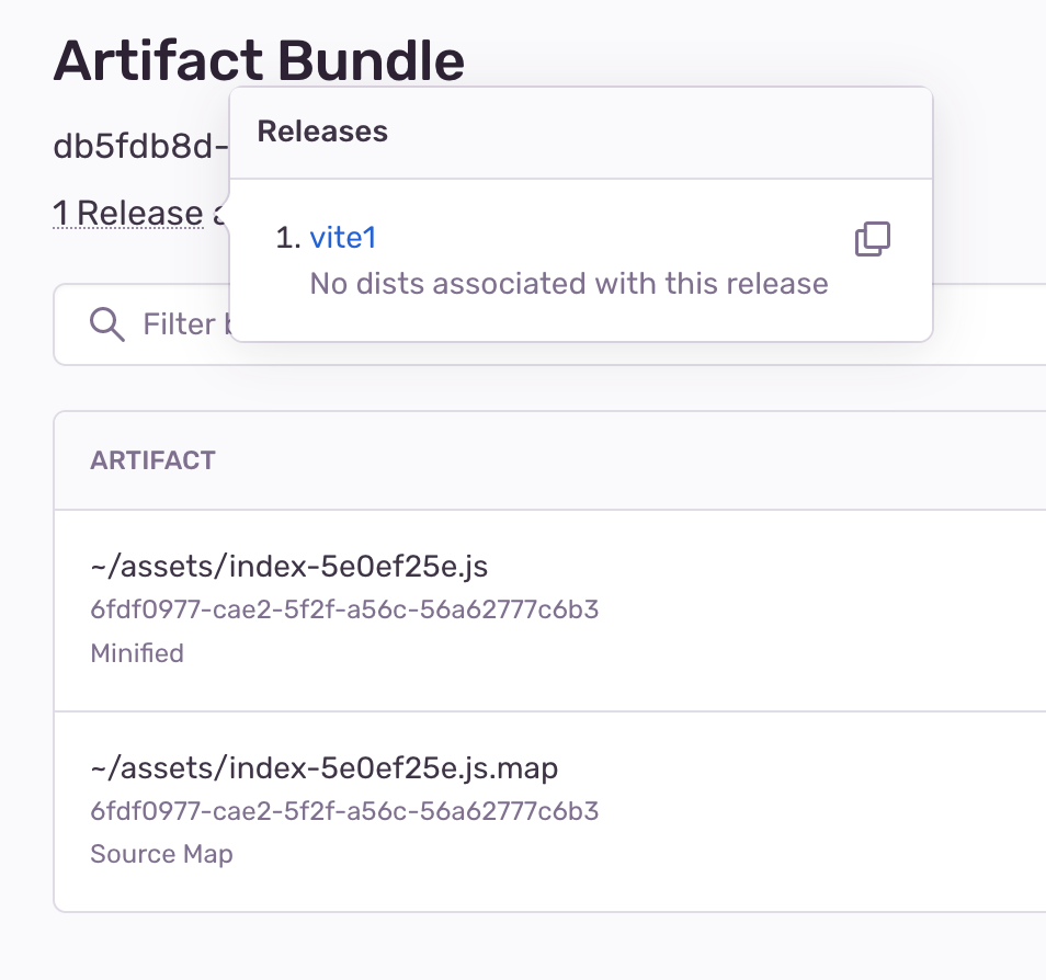 Searching for the Debug ID on the project Source Map page returns the bundle with the specific Debug ID.