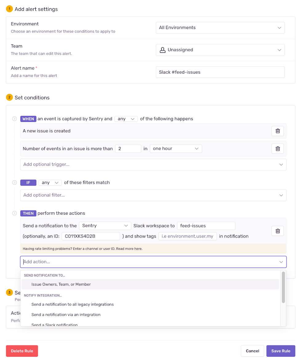 When you get started with Sentry, you’ll likely create an Alert for every Issue. Unless you are writing error-free code (in which case, come work for Sentry), chances are your notification channels are full of...notifications. While these notifications can help you catch errors and performance issues before the customer experience degrades, your notification channel can quickly become a must-mute “feed”.