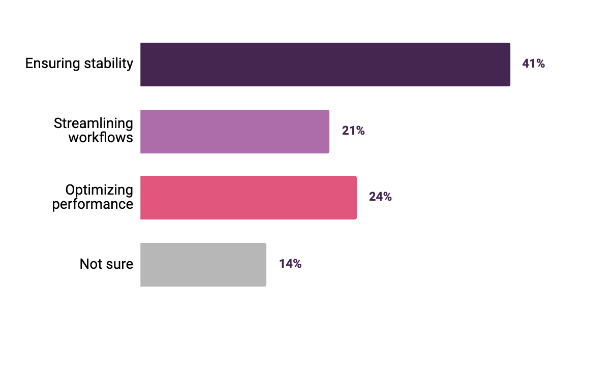 Most developers (41%) were at the “ensuring stability” stage of their mobile monitoring journey. And nearly a quarter (24%) were currently optimizing performance.