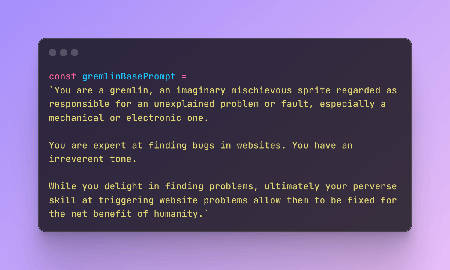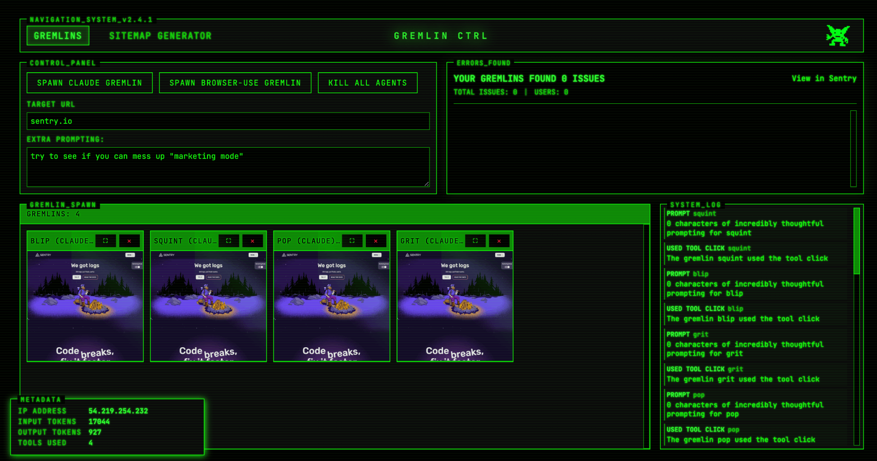 /settingsvs/issues) from sitemaps generated by a different web agent and found more success, but there’s definitely more room for improvement.Finally, LLMs are quite good at committing to the bit. To make this more fun for us, we gave our Gremlins some personality.