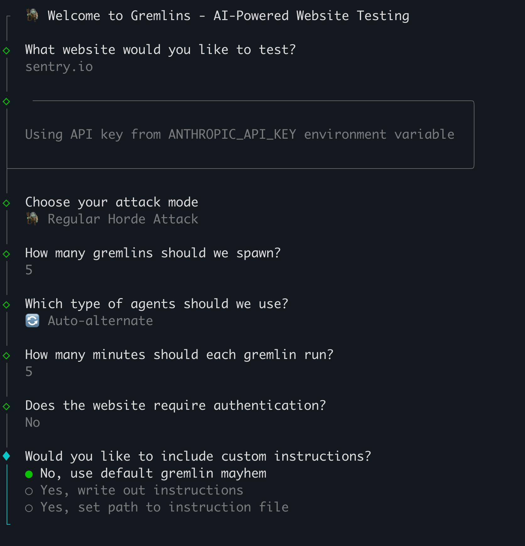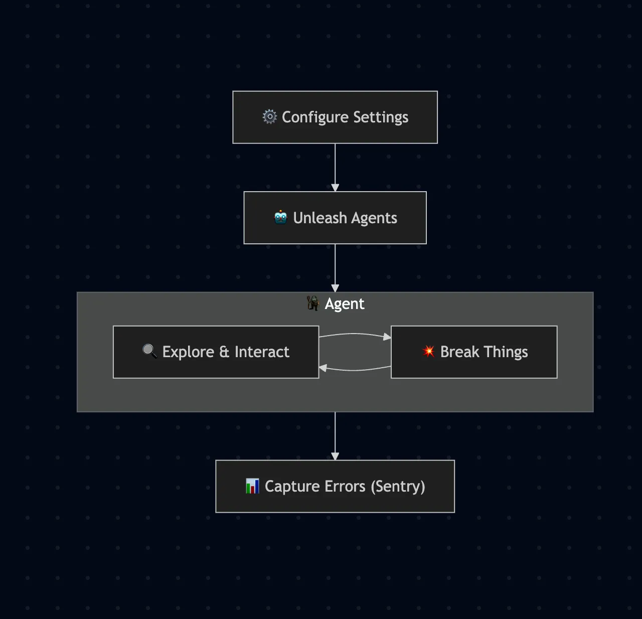 Gremlins solve this by creating chaos via web agents and then leveraging Sentry’s SDKs to detect errors, gather profiling/tracing data, and capture replays, to see what’s been uncovered.