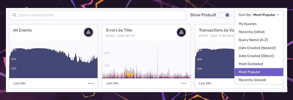 Plus, for large teams and those who live in Discover, we’ve added additional sorting options–‘Recently Viewed’ or by ‘Most Popular'–so you can filter on the queries or dashboards that are most relevant to you or your organization.