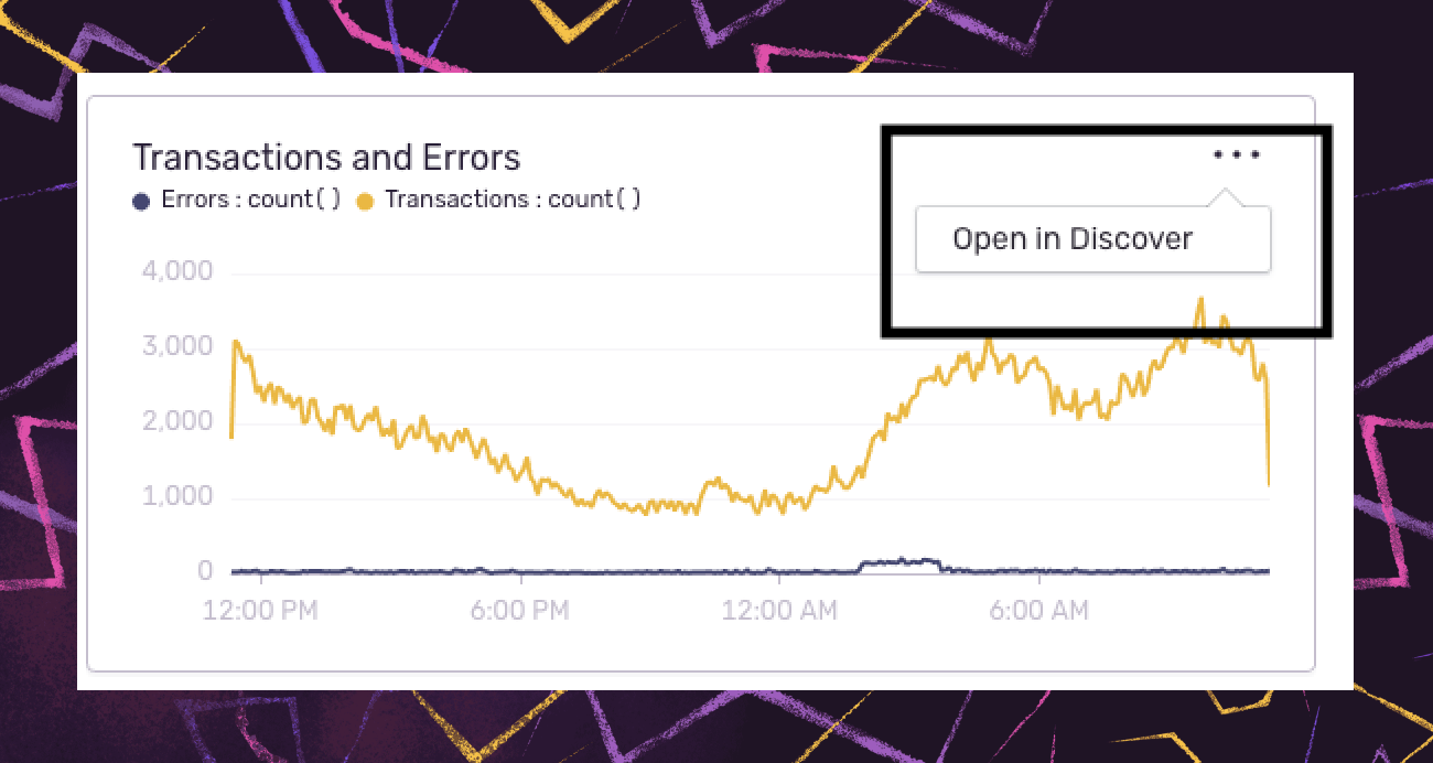 Because this functionality works both ways, if you have additional questions after looking at a widget in your dashboard, you can drill deeper into your underlying event data and investigate it within Discover.