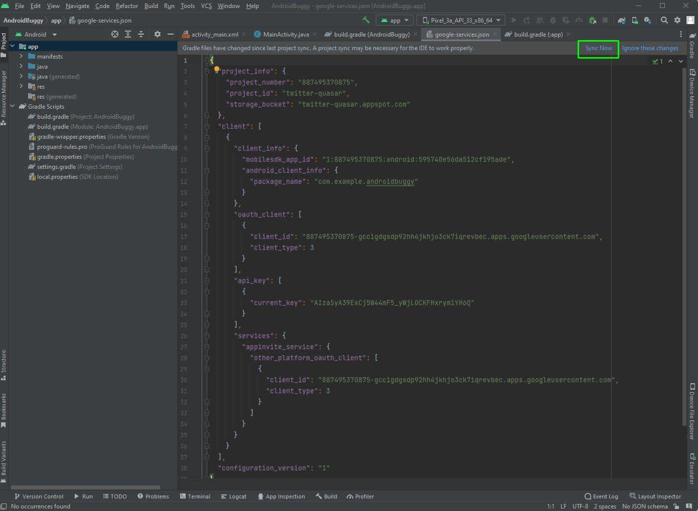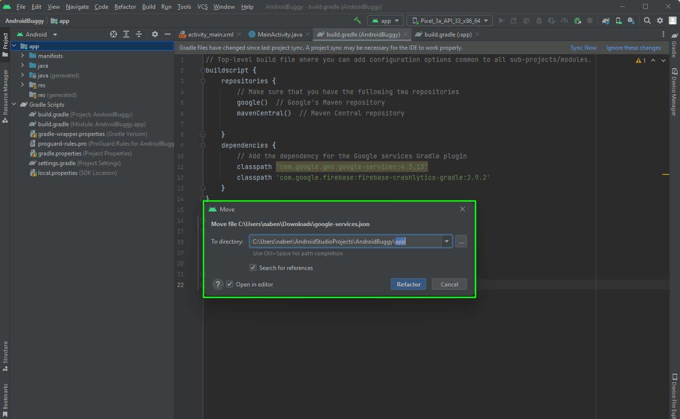 Next, the downloaded google-services.json file needs to be added in the app folder.