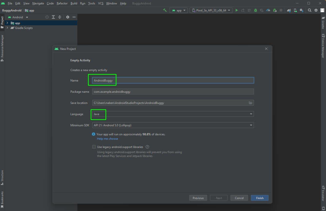 You'll be asked to give the Name and Language. Give any name, but choose Java for the language because we are going to write a small app in Java.
