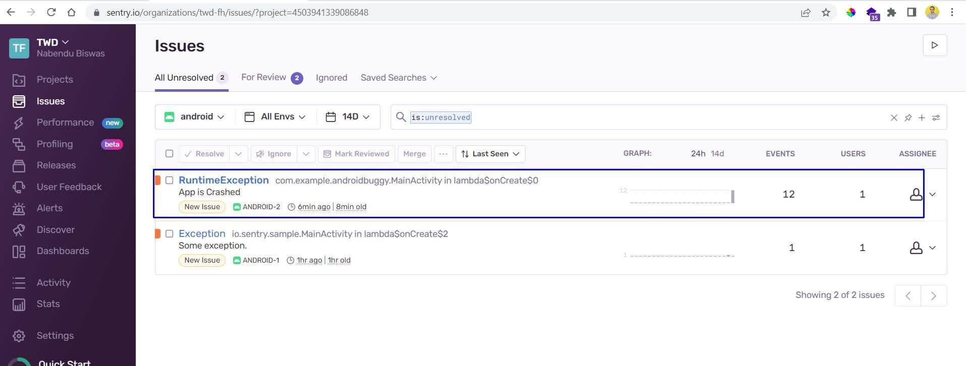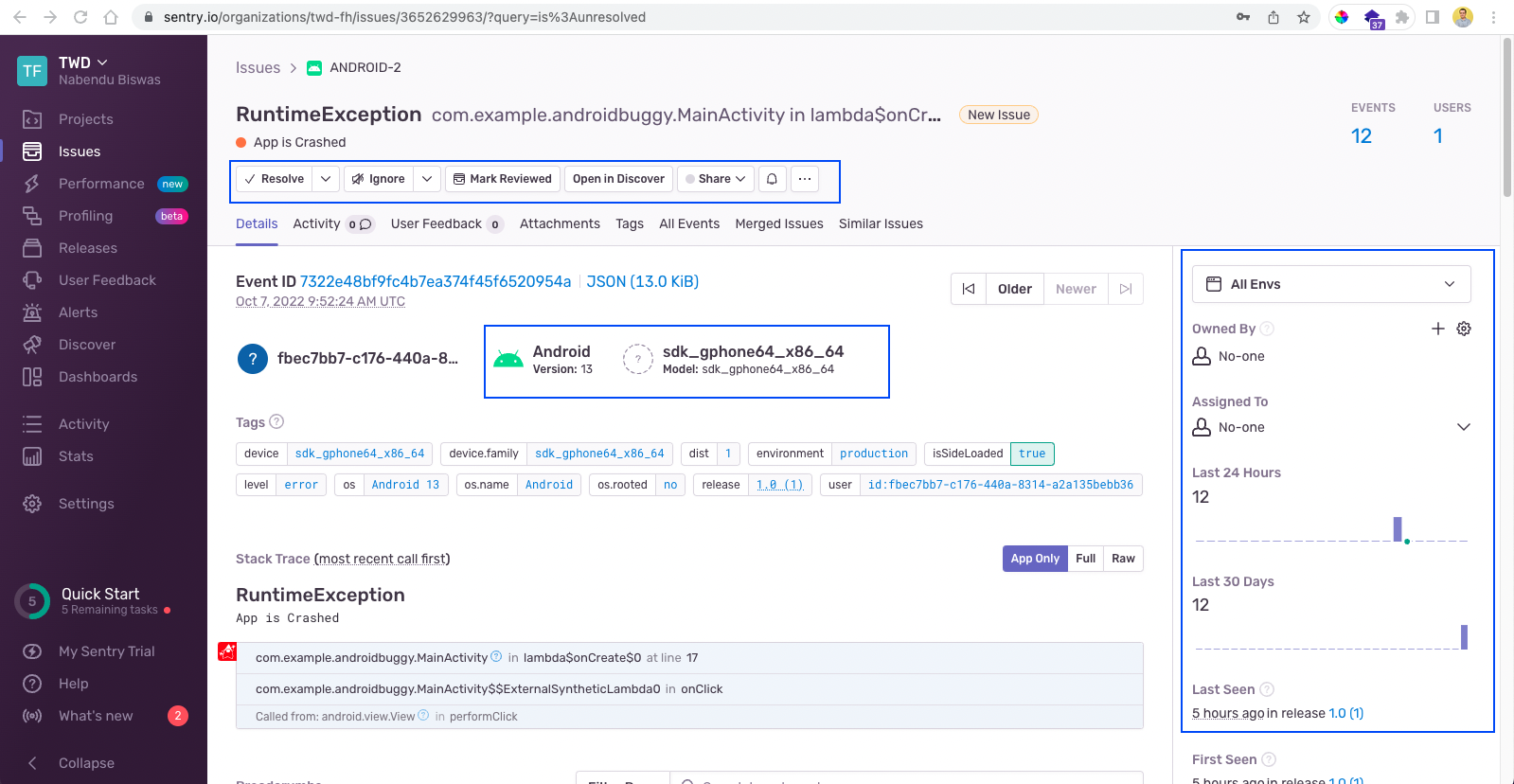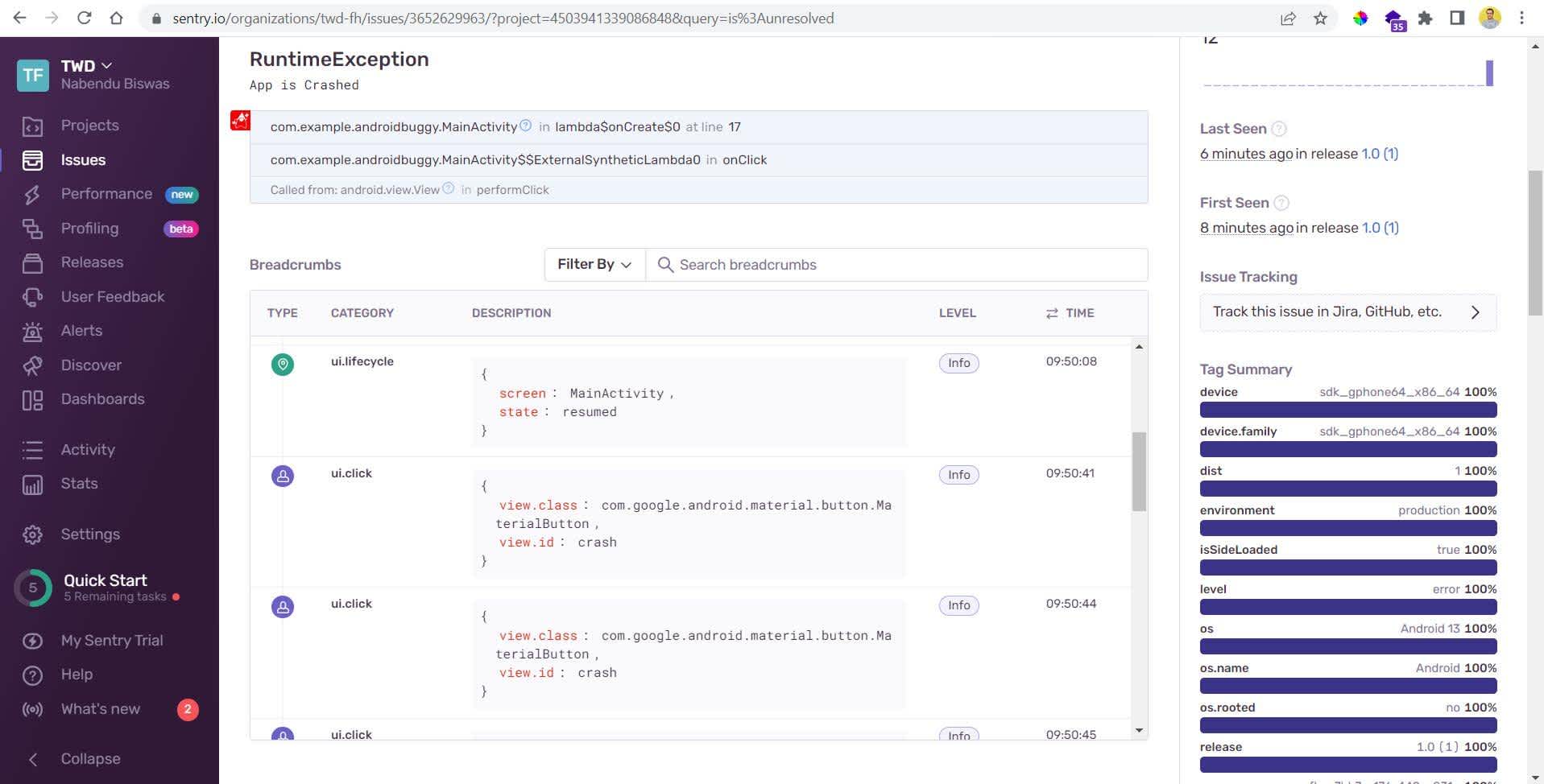 As we have seen in the past three screenshots, Sentry is an advanced cloud-based tool with far more advanced crash-reporting features, such as: