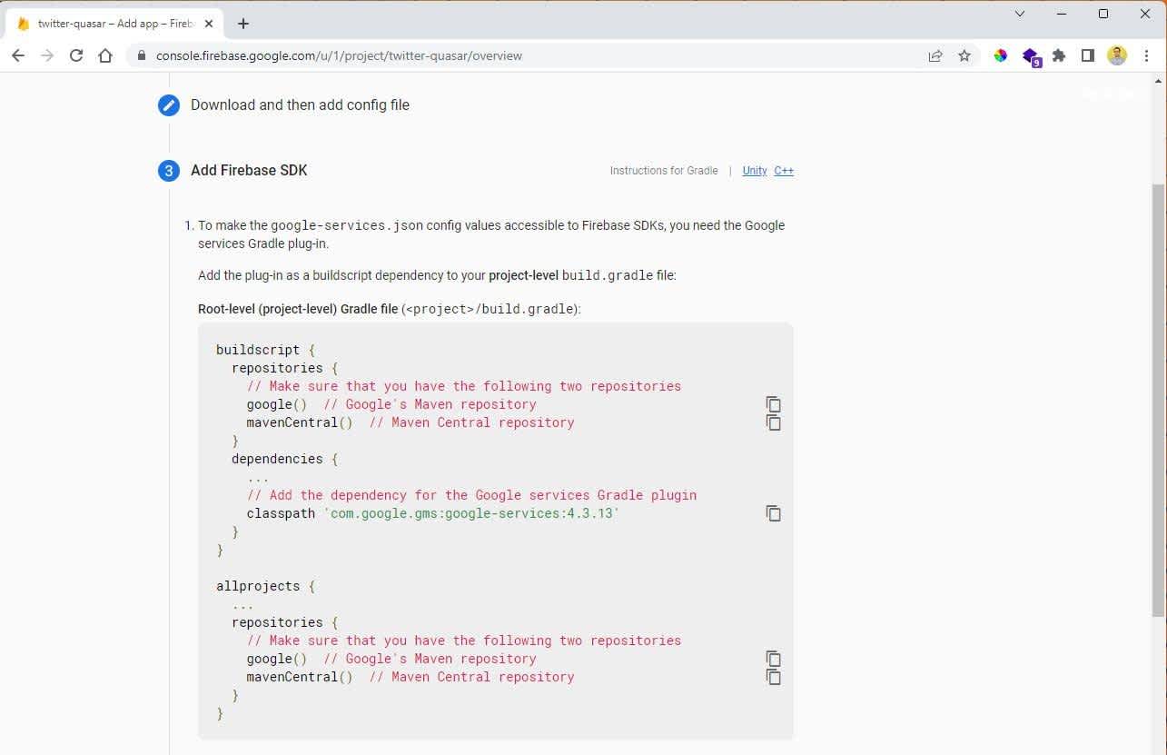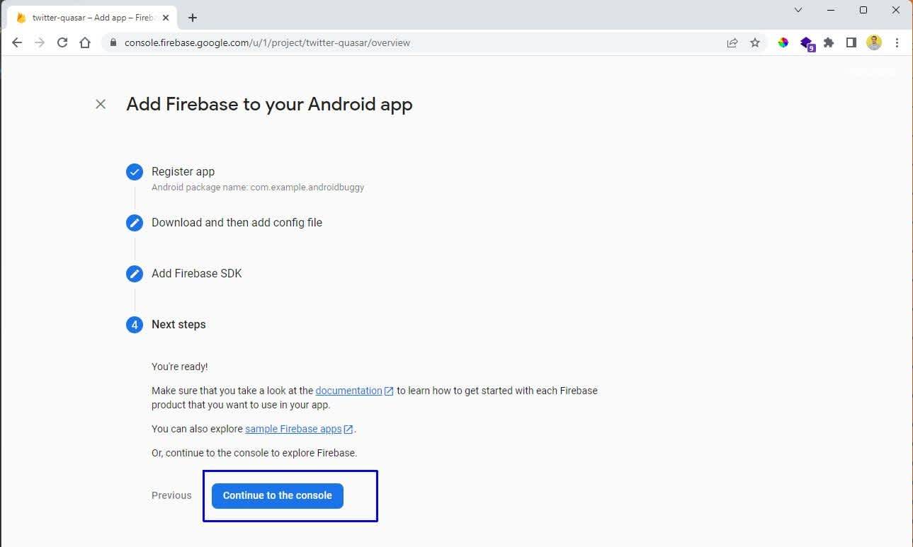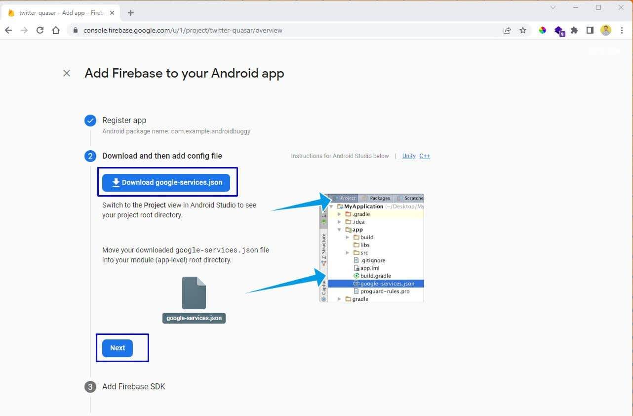 Click on Download google-services.json and it will download the file. Then click on the Next button.
