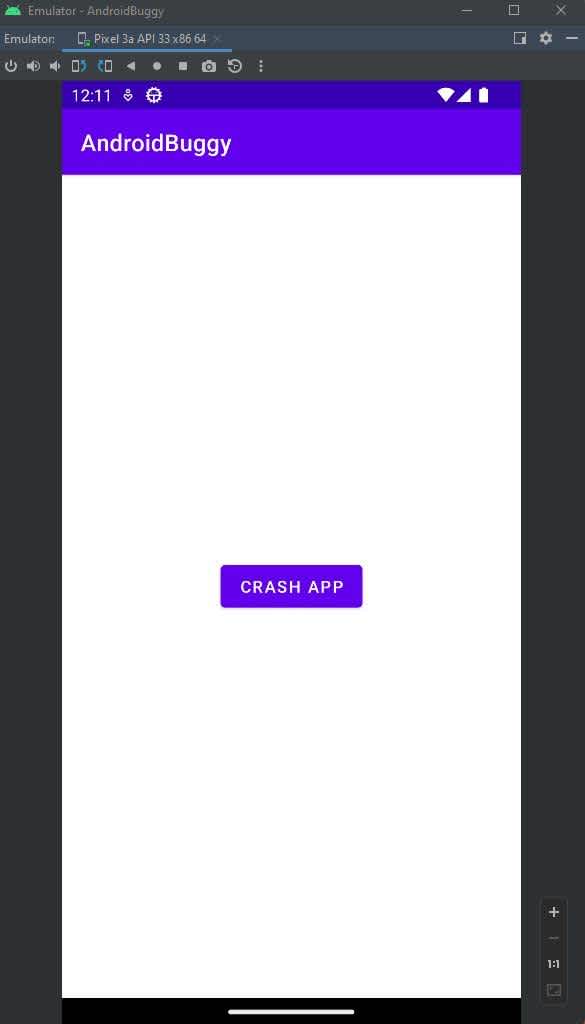 We will first start our Android app on the emulator, as shown below. Here, click on the Crash App button.