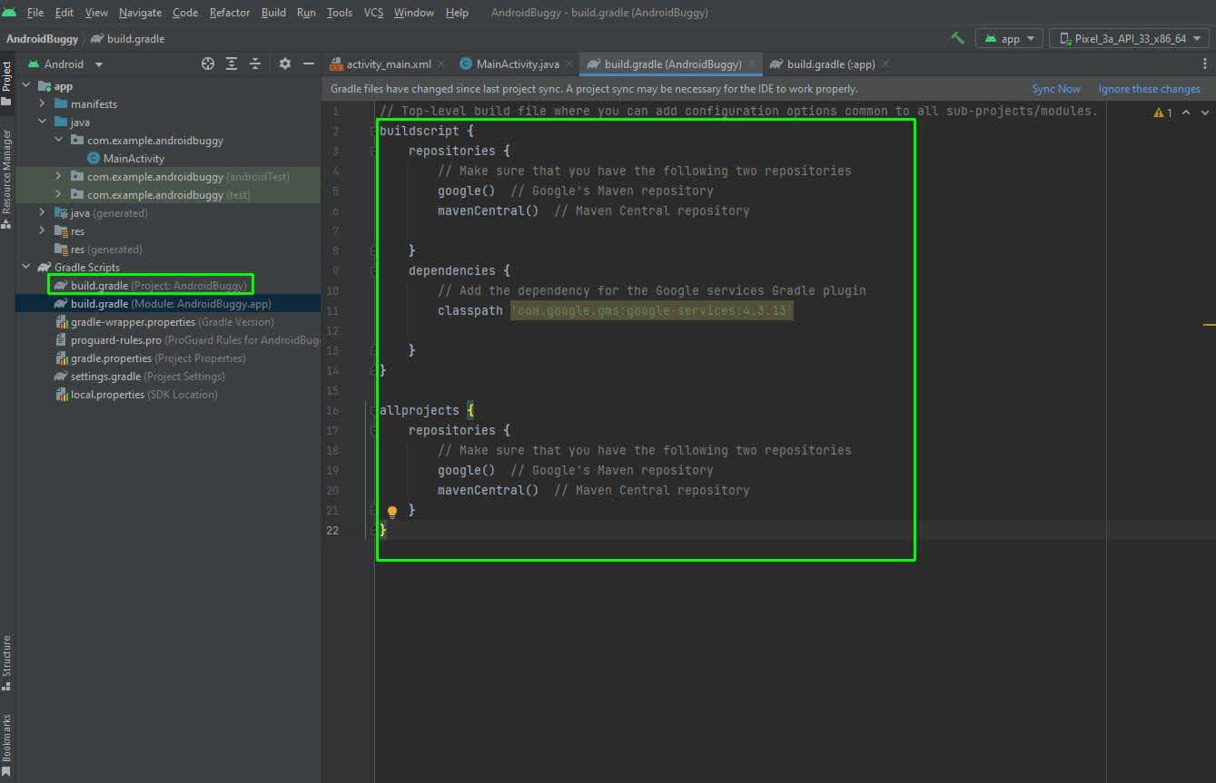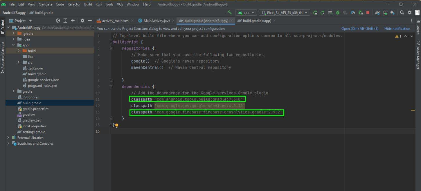 We also need to add more dependencies in the root build.gradle file as shown below.