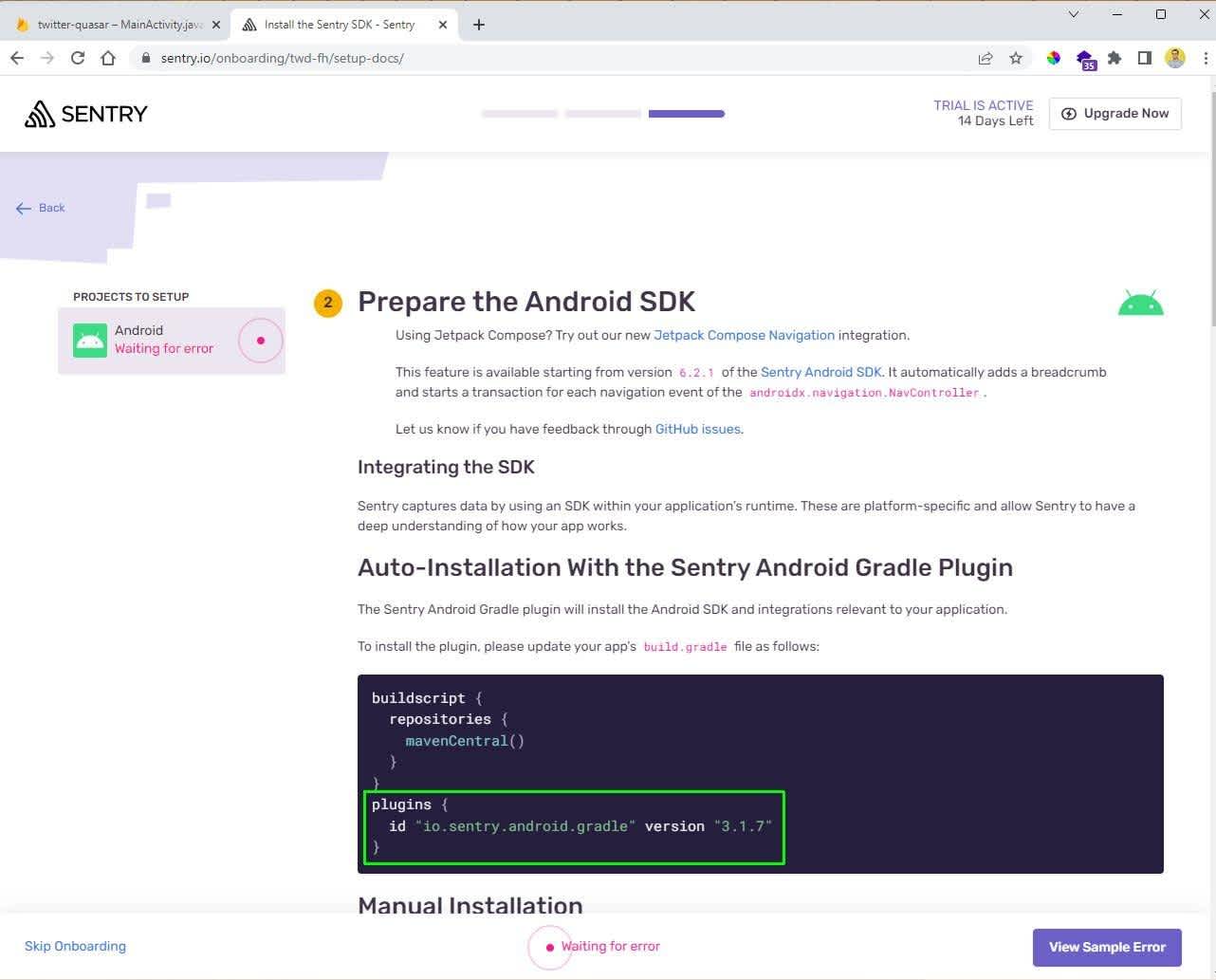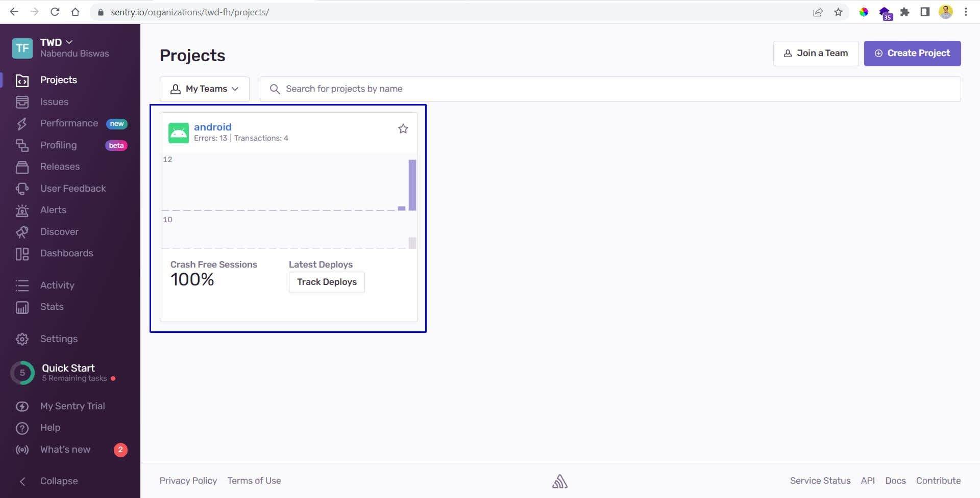 Now let's look into another cloud-based tool for mobile app crash reporting: Sentry. Sentry's setup was very straight-forward and less involved compared to Crashlytics.