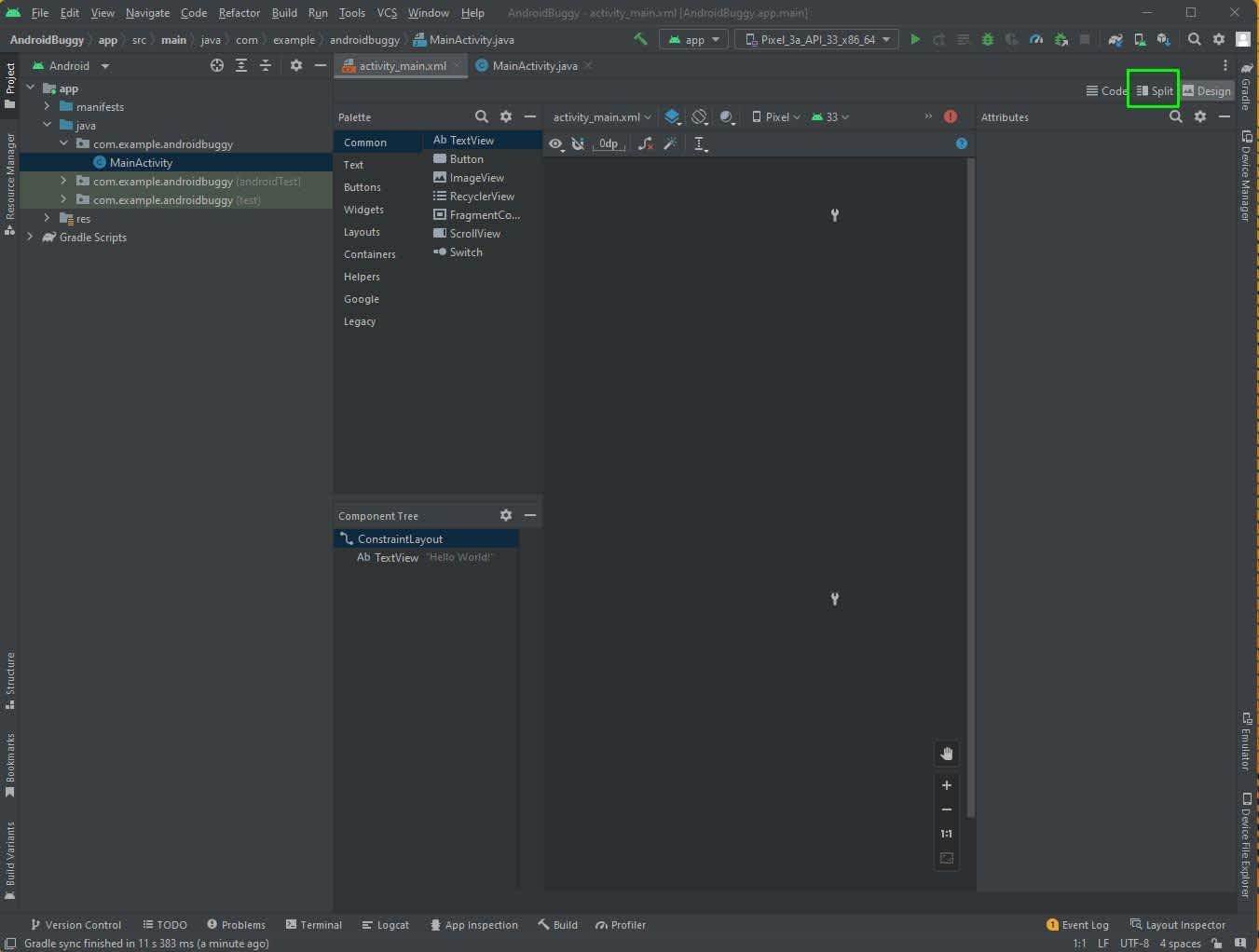 After that, the activity_main.xml will open. Here, click on Split to open the code.