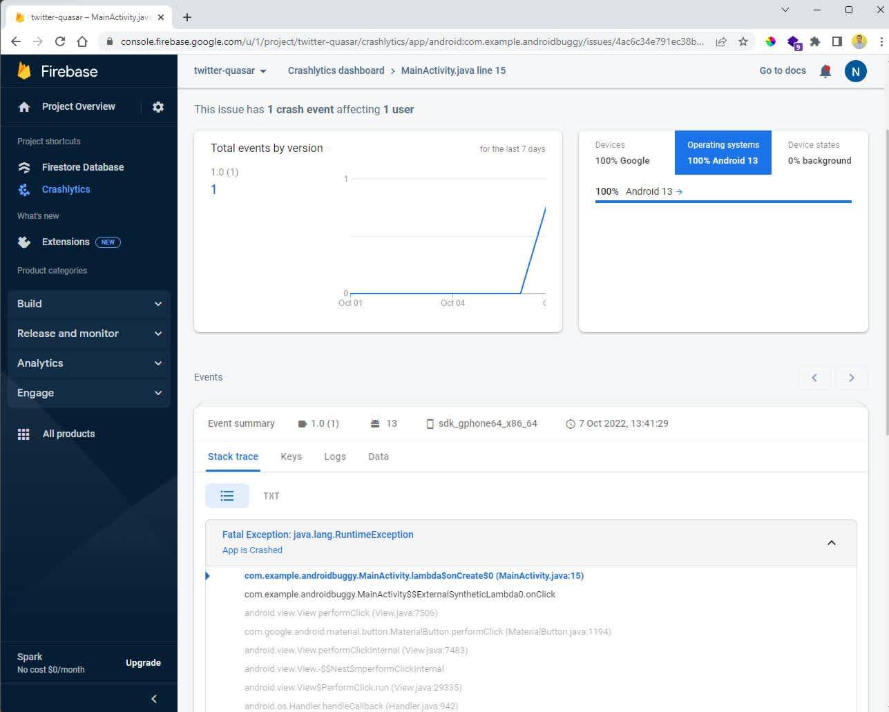 What's more, Firebase will continuously monitor our application, including the deployed production app in the Google Play Store.