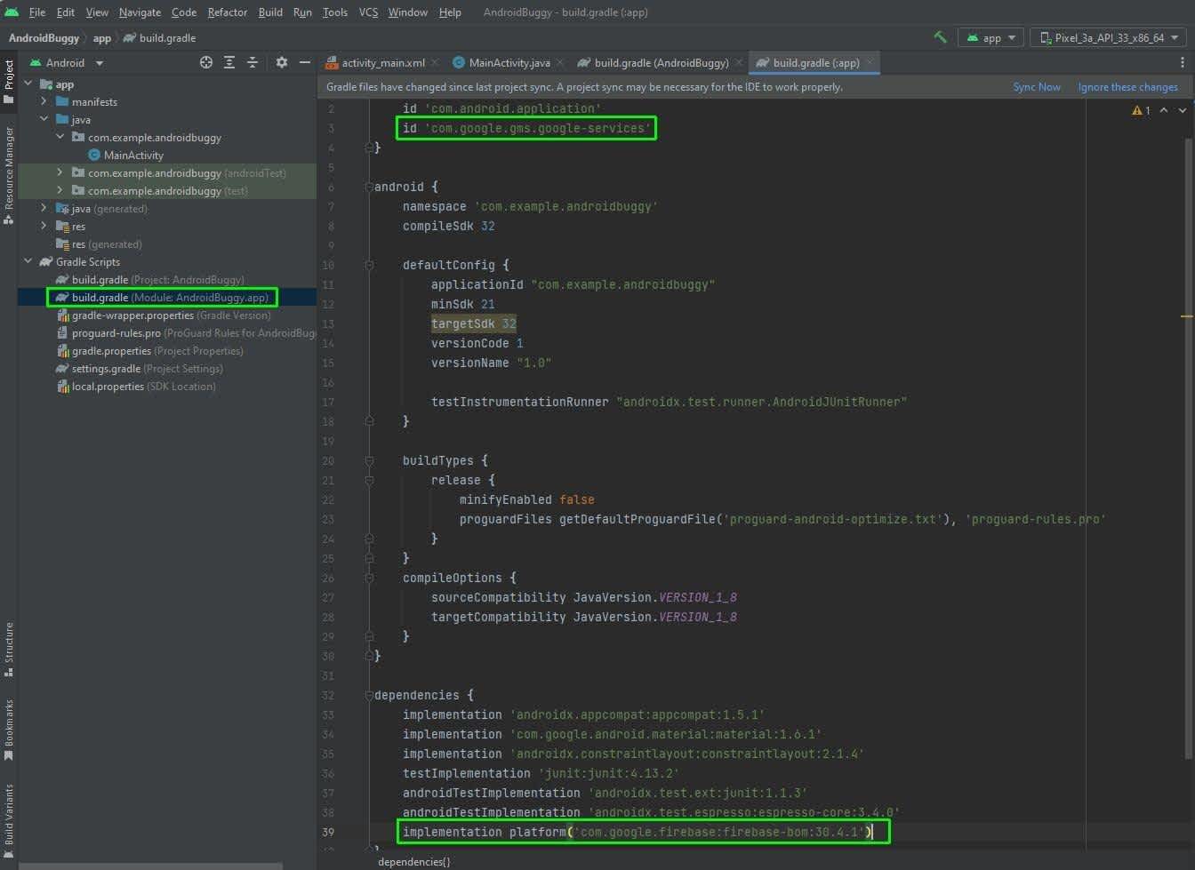 We also need to add dependencies in the module build.gradle file in Android Studio.