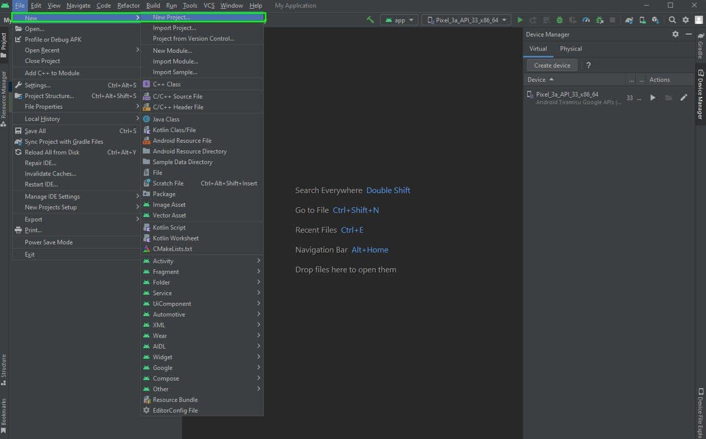 First, we will create a new project in Android Studio. After opening Android Studio, click on New -> New Project.
