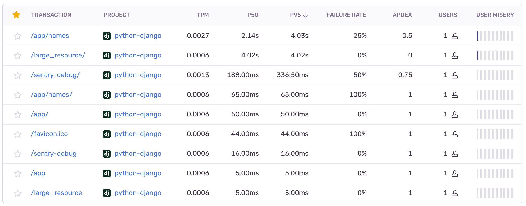 Let's take a look at how to add performance monitoring to our Django application, and then we'll analyze the reports in Sentry as before.
