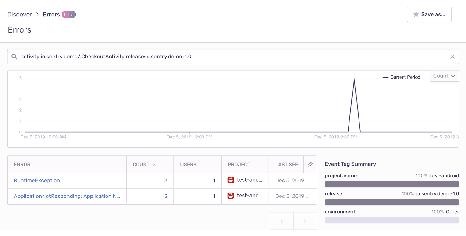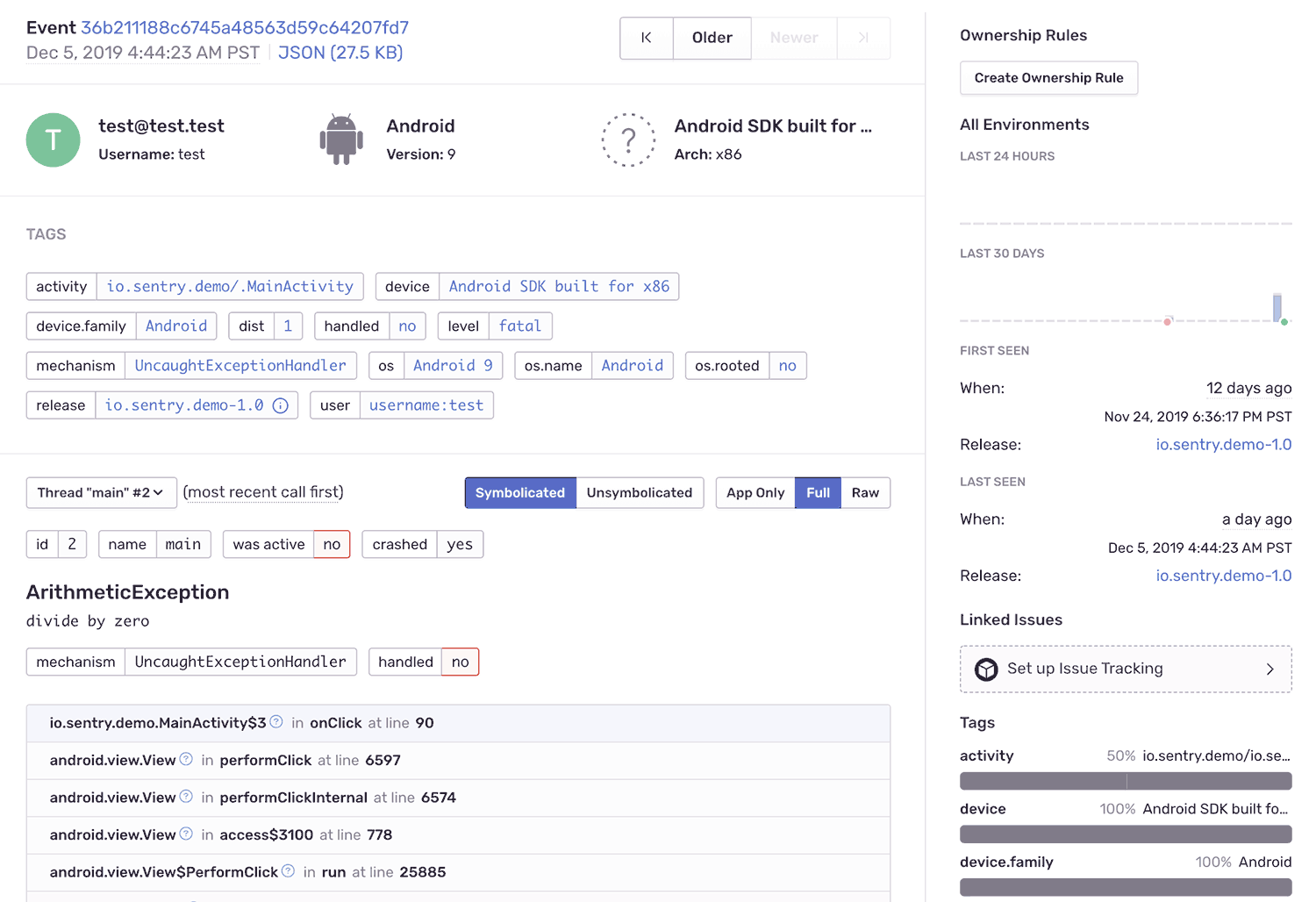 Now, all the uncaught exceptions will be captured by the SDK and reported to Sentry.