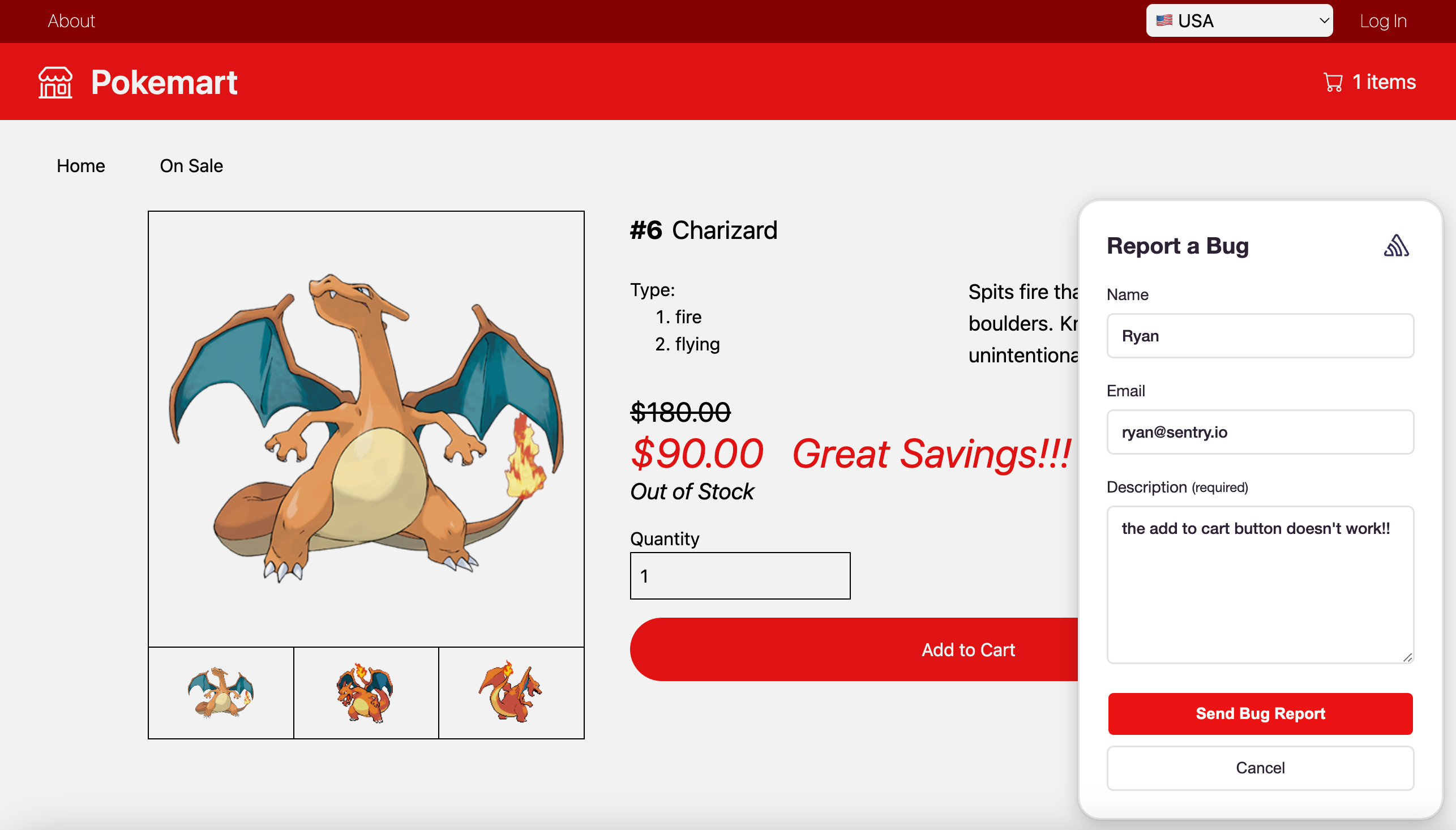 Great. We got rage and dead clicks covered. But what happens when your user hits a permission issue, broken link, or even sees a typo? Those are just a few examples of other non-errors that fly under the Sentry radar. With our improved User Feedback feature, your users can create a bug report and let you know about these sneaky issues right away.