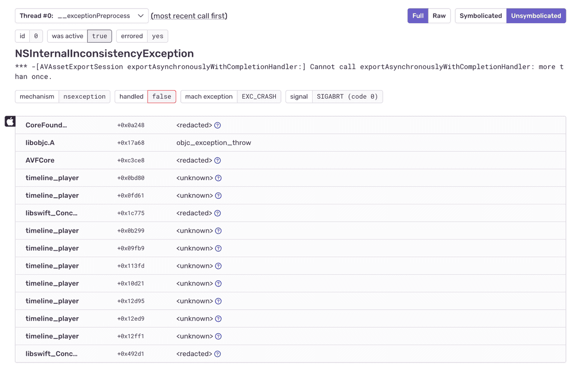 Without Sentry, we would need to collect these debug symbol files – which Sentry collects automatically from App Store Connect and from uploads from our CI system – and then manually use them to convert the obfuscated data to something human-readable.