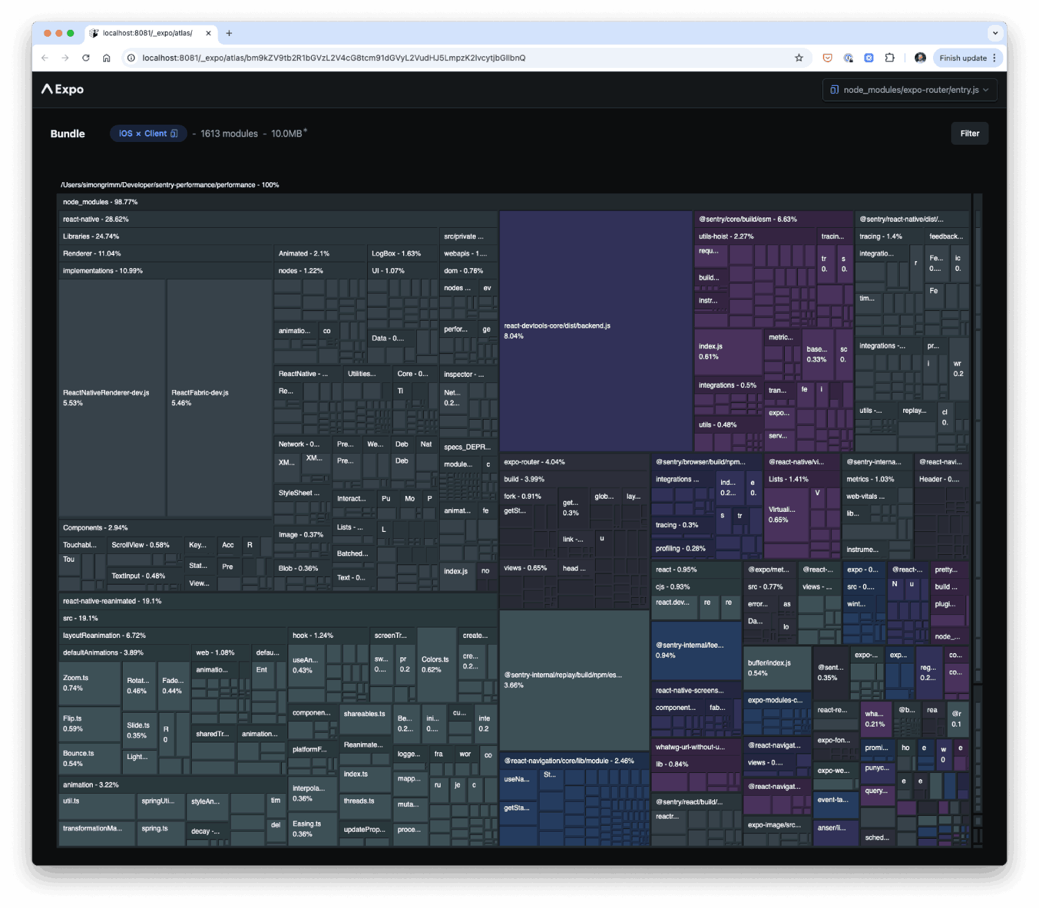 Once again Expo has you covered with a tool called Expo Atlas, which helps to analyze your app bundle size and identify the biggest contributors.