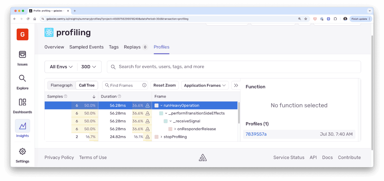 For monitoring and debugging, integrate the Sentry React Native SDK early in your development process. Performance issues are much easier to catch and fix when you have real user data and detailed error tracking from day one. By the way, Sentry also has an integration with Expo that you can use to view Sentry crash reports and session replays for your Expo app deployments directly in Expo.
