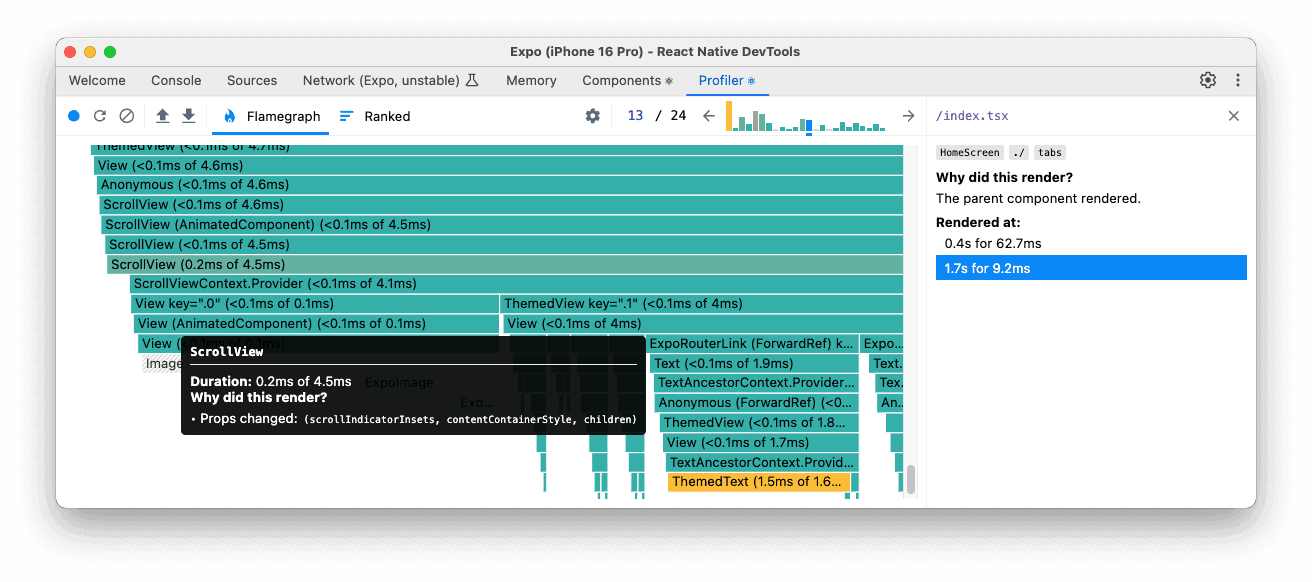 Your first move should always be to understand what’s happening in your app, and the Profiler in the React Native DevTools is a great way to do that.