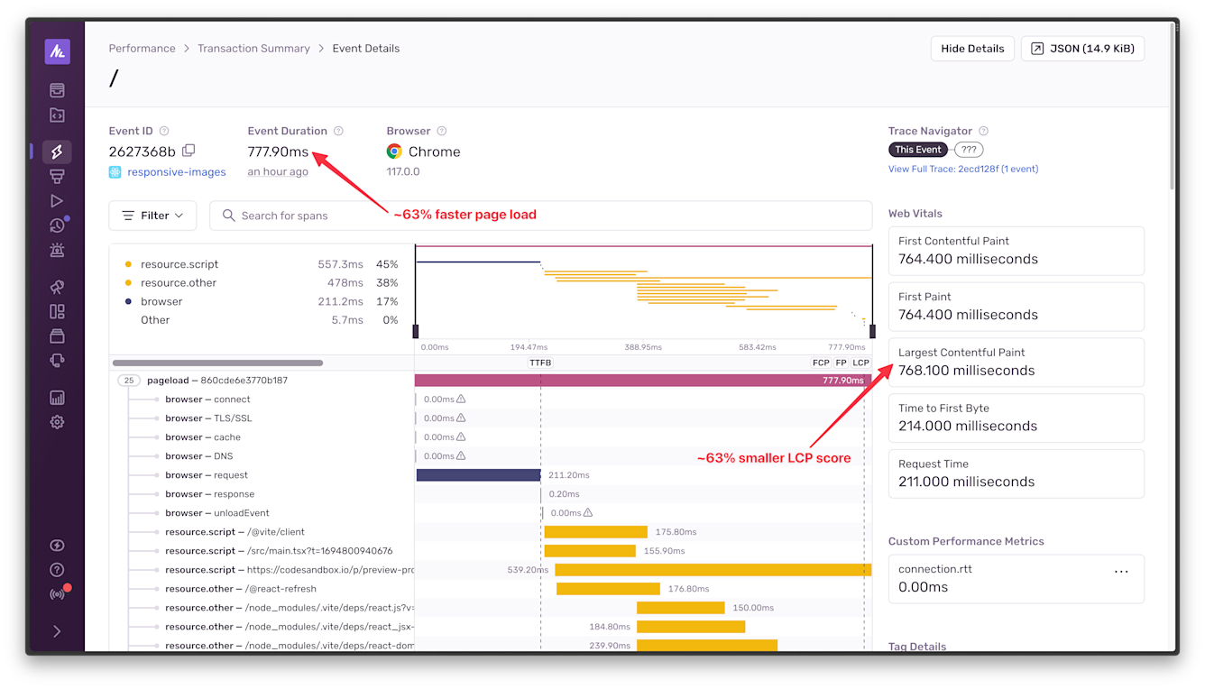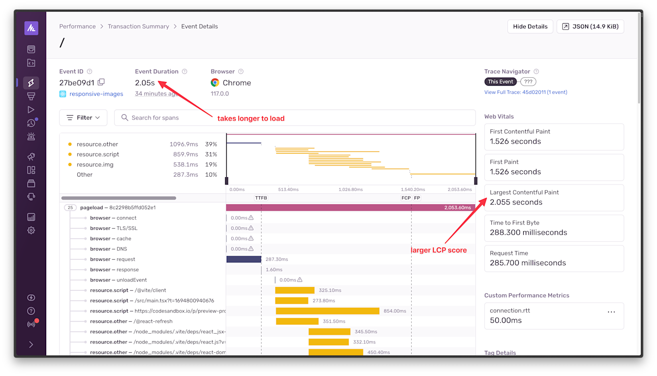Grab your sunglasses and phone - because you no longer have to monitor large images and can rest assured that Sentry will let you know if another images causes any LCP and page load performance issues.