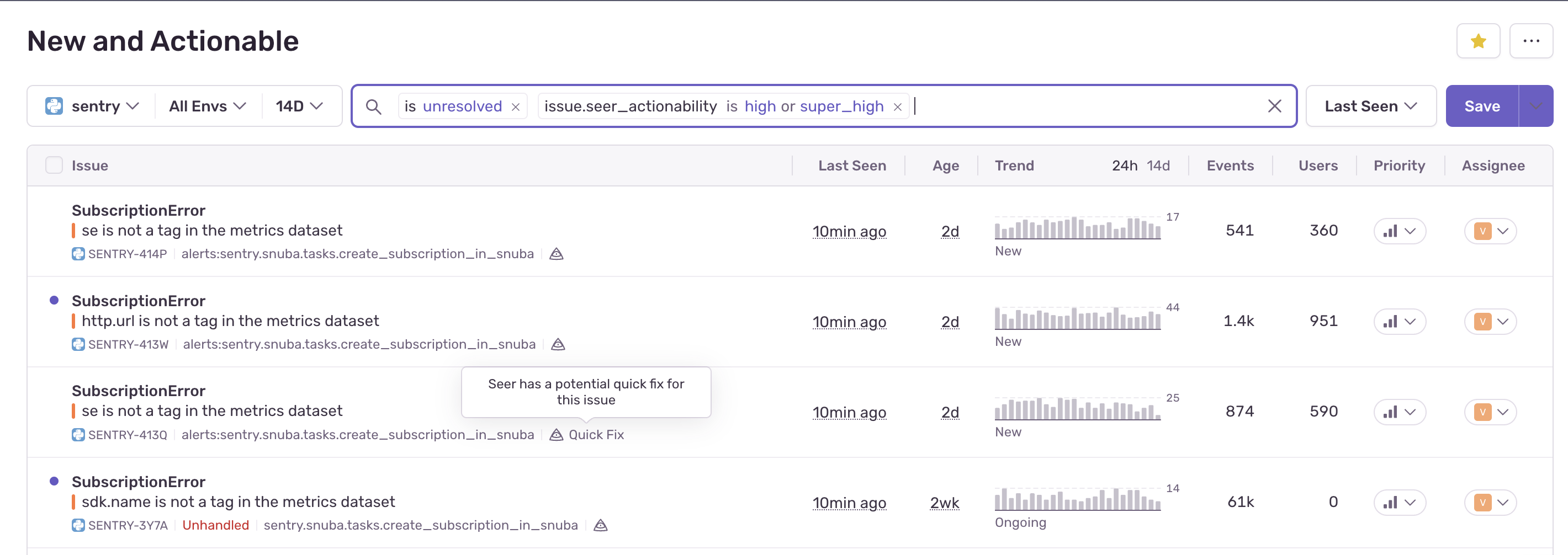 Yep. With automated issue scans, Seer keeps an eye on all your incoming issues and highlights the ones that are most actionable—giving you tighter Slack alerts and less noise.
