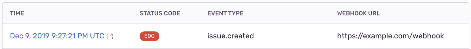 Of course seeing the failed webhook requests helps you understand that an error occurred, but what if you need more context? If only there was a product that could show us more information…enter Sentry. Linking a Sentry error to a webhook request is simple. Set the Sentry-Hook-Error header with the Sentry event ID and the Sentry-Hook-Project header with the Sentry project ID when reporting the error and you’re good to go!