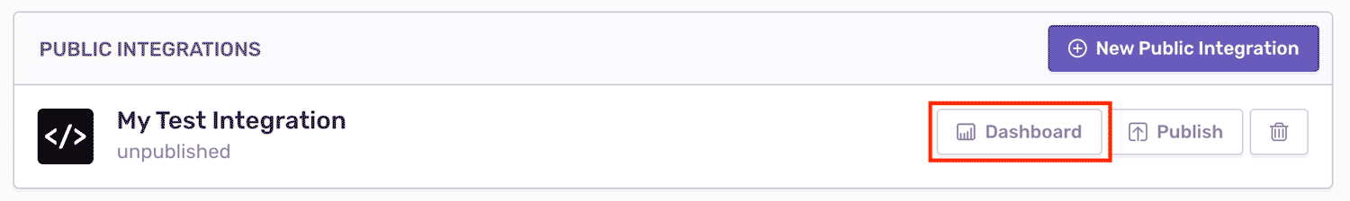 The new integration dashboard comes with features and metrics that will help you understand the business value of the integrations you develop and identify any potential technical issues that they may have. It’s accessible through the Settings > Developer Settings page. Each integration you create will have its own dashboard.