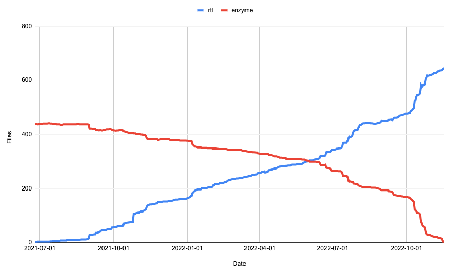 In 2021, we had committed to converting to RTL from Enzyme, and we had developed an agreed-upon strategy for getting it done. But, we wanted to model how much actual work this would take. Would this be a couple of weeks, a month, or a year? Would we be here converting files until the end of time? We needed to understand how large an undertaking this would be, in practice, to coordinate conversion work with our primary responsibilities – developing Sentry.